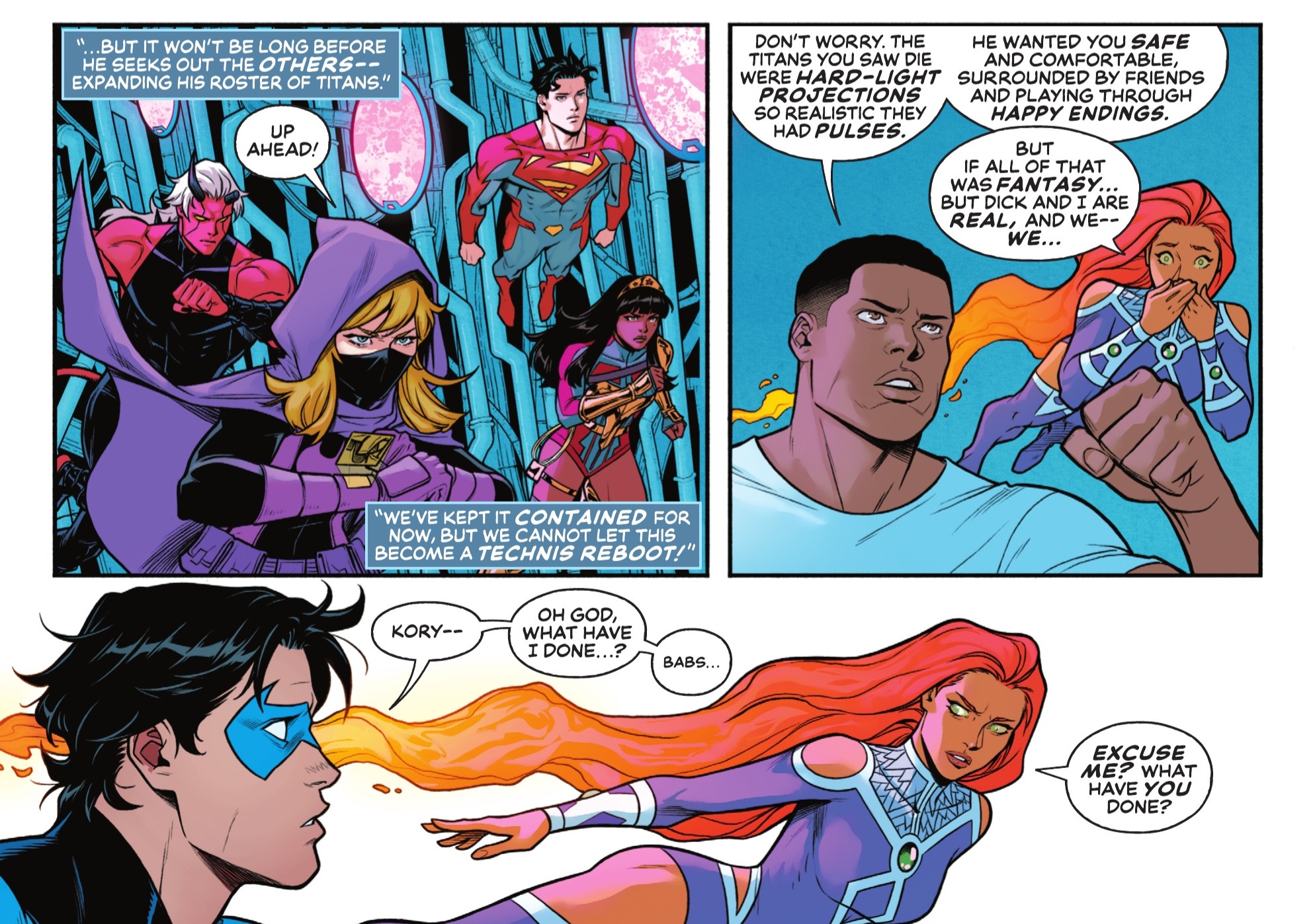 >>153244587I like New Titans so far and I'm interested to see how things develop.The real issue with the Titans is that when someone tries something new, fans get offended and want the same old thing despite complaining about repetitive storylines.