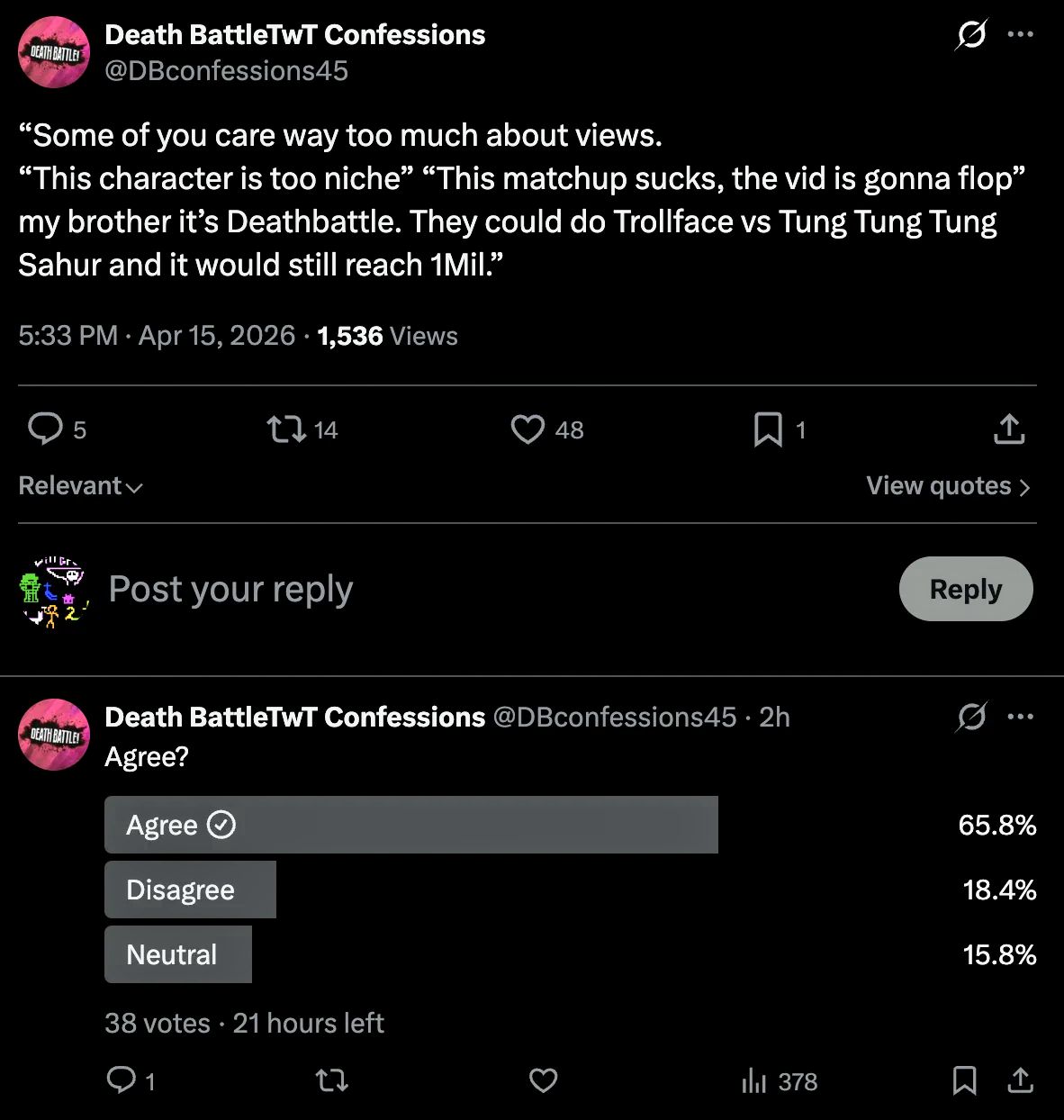 >>153252056In terms of a visible "evidence" thing they tried to push, I doubt it. >>153252067 is the worst one though because you could FEEL the cope with how they said it, and such retard logic can apply to any character