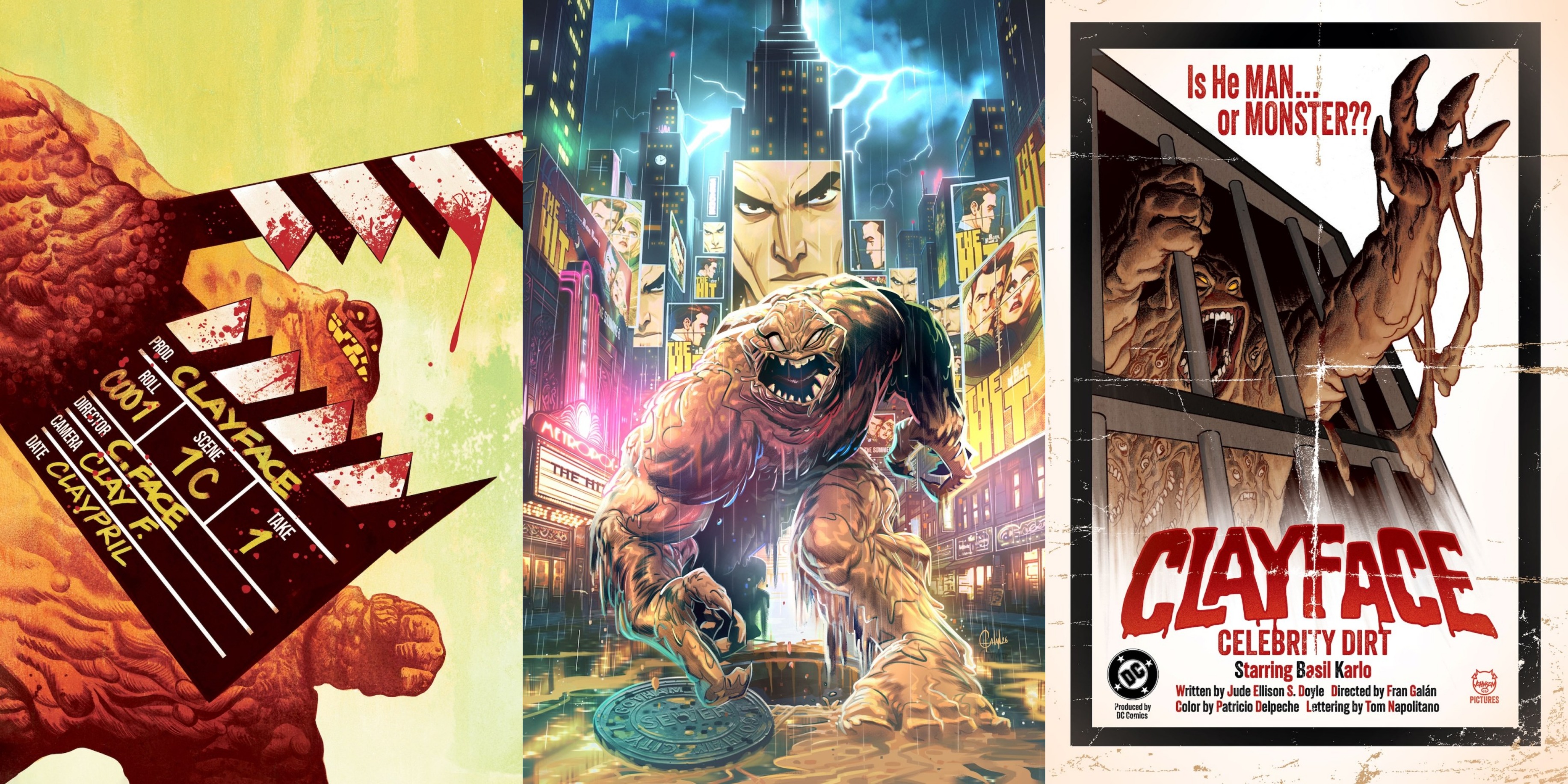 >Clayface: Celebrity Dirt #1 features a main cover by Galán, with variants by Mike Del Mundo and Dave Johnson. The debut issue arrives July 8, 2026.