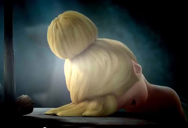 Is there a shot of Tinkerbell without her top-knot?