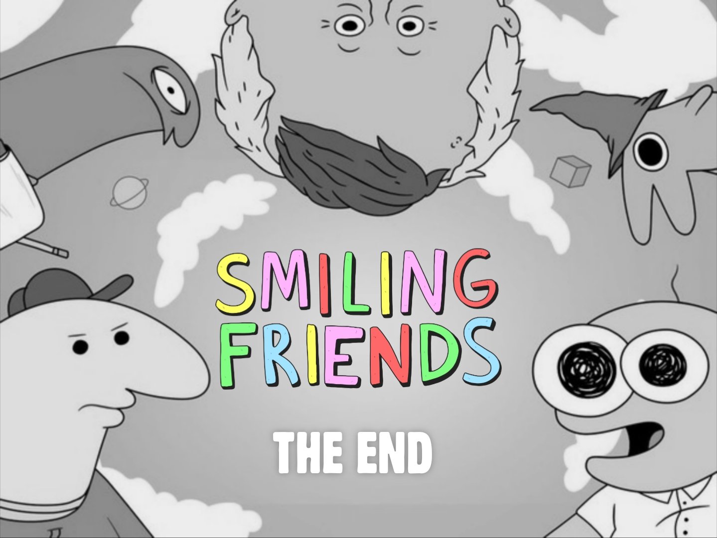 >>153266538Season 4:1. Pim Finally Snaps>Pim hits his limit after dealing with nonstop awful clients and decides to become a “bad person”. He literally can’t do it and just ends up making everything worse in a weirdly disturbing way.2. The CEO Retreat>Mr. Boss forces everyone to go to a corporate retreat run by some creepy guru. Turns out the guy might actually be stealing people’s happiness instead of helping them.3. Charlie’s Side Hustle>Charlie secretly gets a second job that pays way more than Smiling Friends. It slowly becomes clear the job is extremely illegal and he just keeps going anyway.4. Mr. Boss Goes Missing>Mr. Boss disappears and the gang investigates. They find out he has like 5 different identities and none of them match up5. The Internet Man>Terminally online dude hires them to fix his life. Every attempt just sends him deeper into worse and more niche internet rabbit holes.6. Allan’s Day Off>Allan tries to relax for once. Gets stuck in an endless loop of minor inconveniences that escalate into a surreal nightmare.7. Smiling Friends Go GlobalCompany expands internationally. Every country has a completely different (and messed up) idea of what “happiness” is.8. The Return of Desmond> that one client they “fixed” comes back. He’s somehow way worse and they realize they might’ve ruined his life9. Pim’s New Friend> Pim meets a guy who seems totally normal and nice. Everyone else slowly realizes there’s something VERY wrong with him except Pim10. The Happiness Audit> company gets audited to prove they actually make people happy. They can’t, reality starts breaking down, and it turns into a full existential mess.