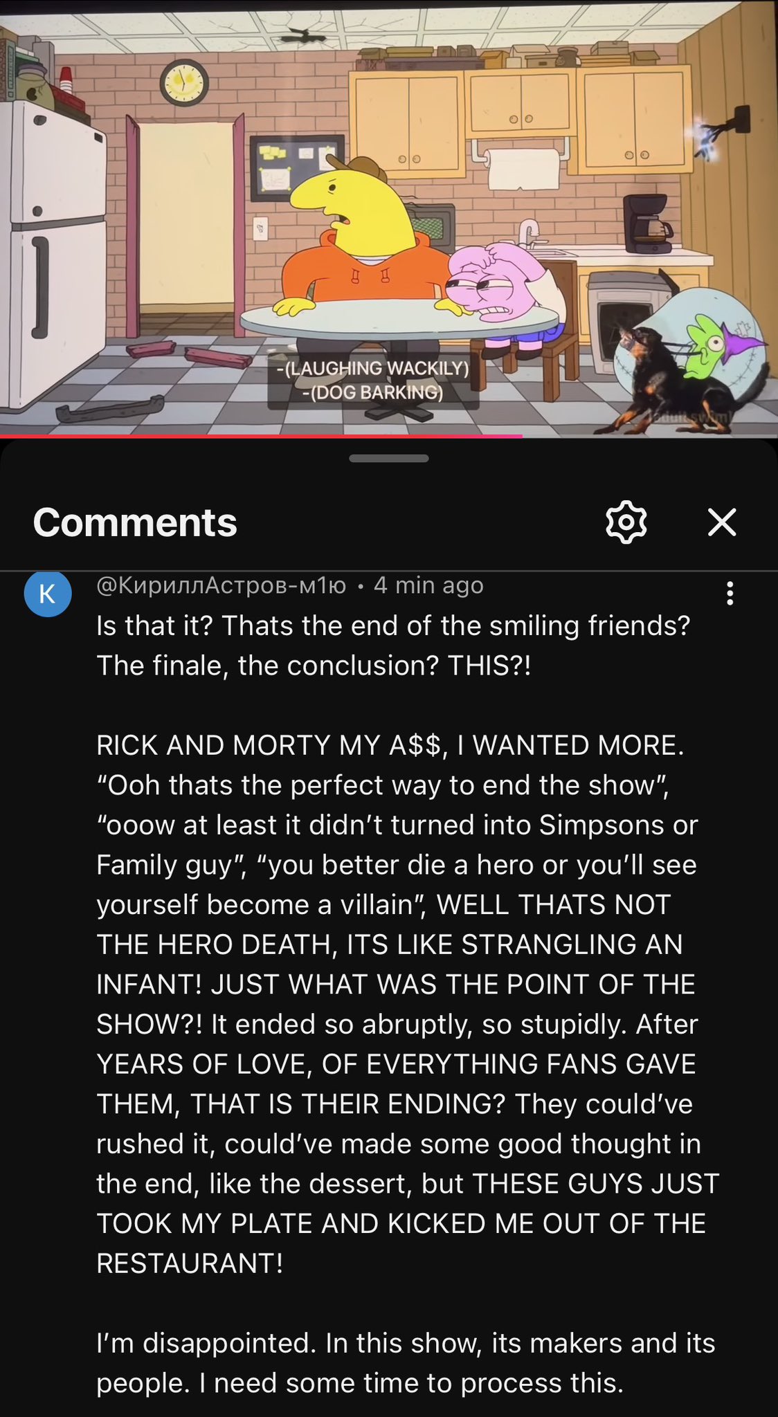 what if they uhhhh had an episode where something wacky happens and the characters react realistically with awkward muttering. then a small critter moves fast and also its a reference to a video on the internet i think that could have carried them through 2 more seasons