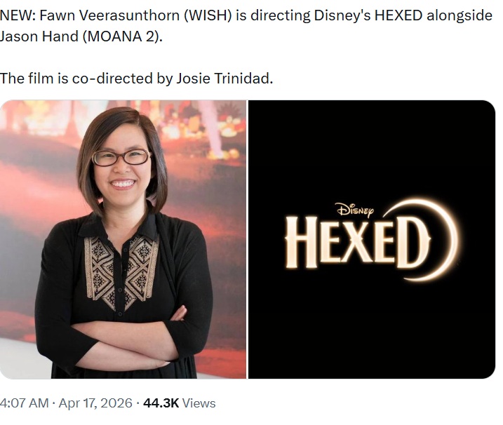 >Prasansook "Fawn" Veerasunthorn is a Thai film director and animator. She worked on the Disney Animation films Frozen (2013), Moana (2016), and Zootopia (2016) as a storyboard artist, and as head of story on Raya and the Last Dragon (2021). The first feature film she directed was Disney's Wish (2023).So, to distill that down:>pre-production artist on good films written and directed by other people>head of story on movie with shitty toxic story>director of one of the worst films the studio has made in recent memorySure, let's give her another major project. She's proven herself!