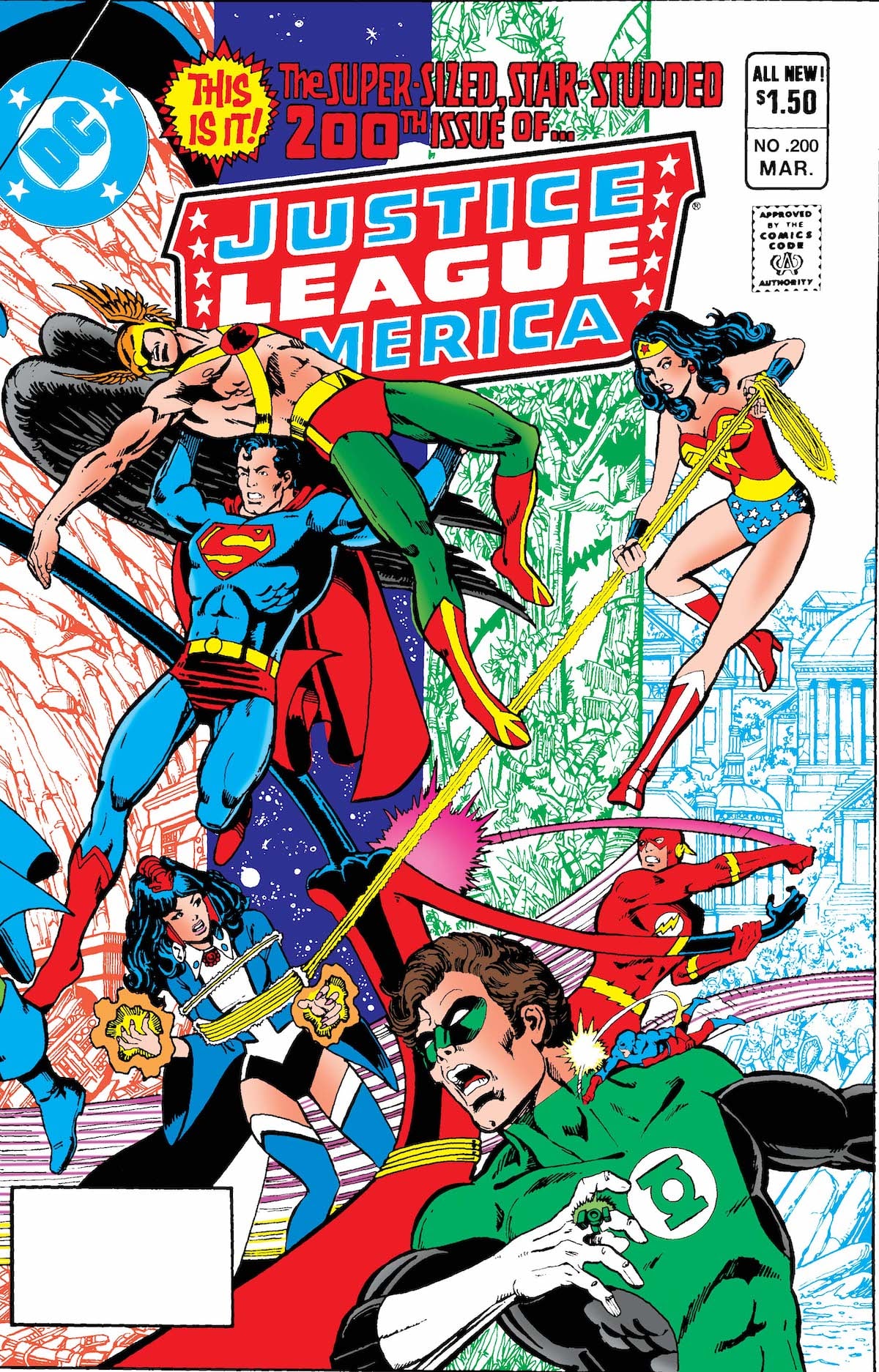JUSTICE LEAGUE OF AMERICA #200 FACSIMILE EDITIONWritten by GERRY CONWAYArt by GEORGE PEREZ, BRETT BREEDING, PAT BRODERICK, JIM APARO,DICK GIORDANO, GIL KANE, CARMINE INFANTINO, BRIAN BOLLAND, and JOE KUBERTCover by GEORGE PEREZFoil variant cover by GEORGE PEREZ ($19.99 US)Black Canary Super Powers cover by JASON GEYER and ALEX SAVIUK ($14.99 US)$14.99 US | 76 pagesON SALE 7/22/26In this special anniversary adventure, the seven founding members of the League are pitted against the team’s later additions when a sinister plan put into motion by the Justice League’s very first case at last comes to fruition. An all-star cast of talent brings old and new Leaguers together in this astounding oversize epic!