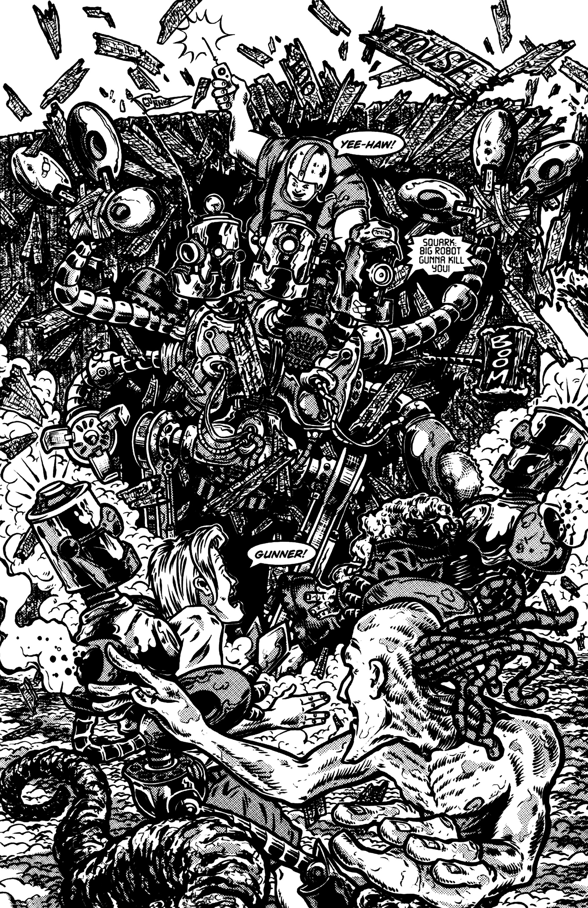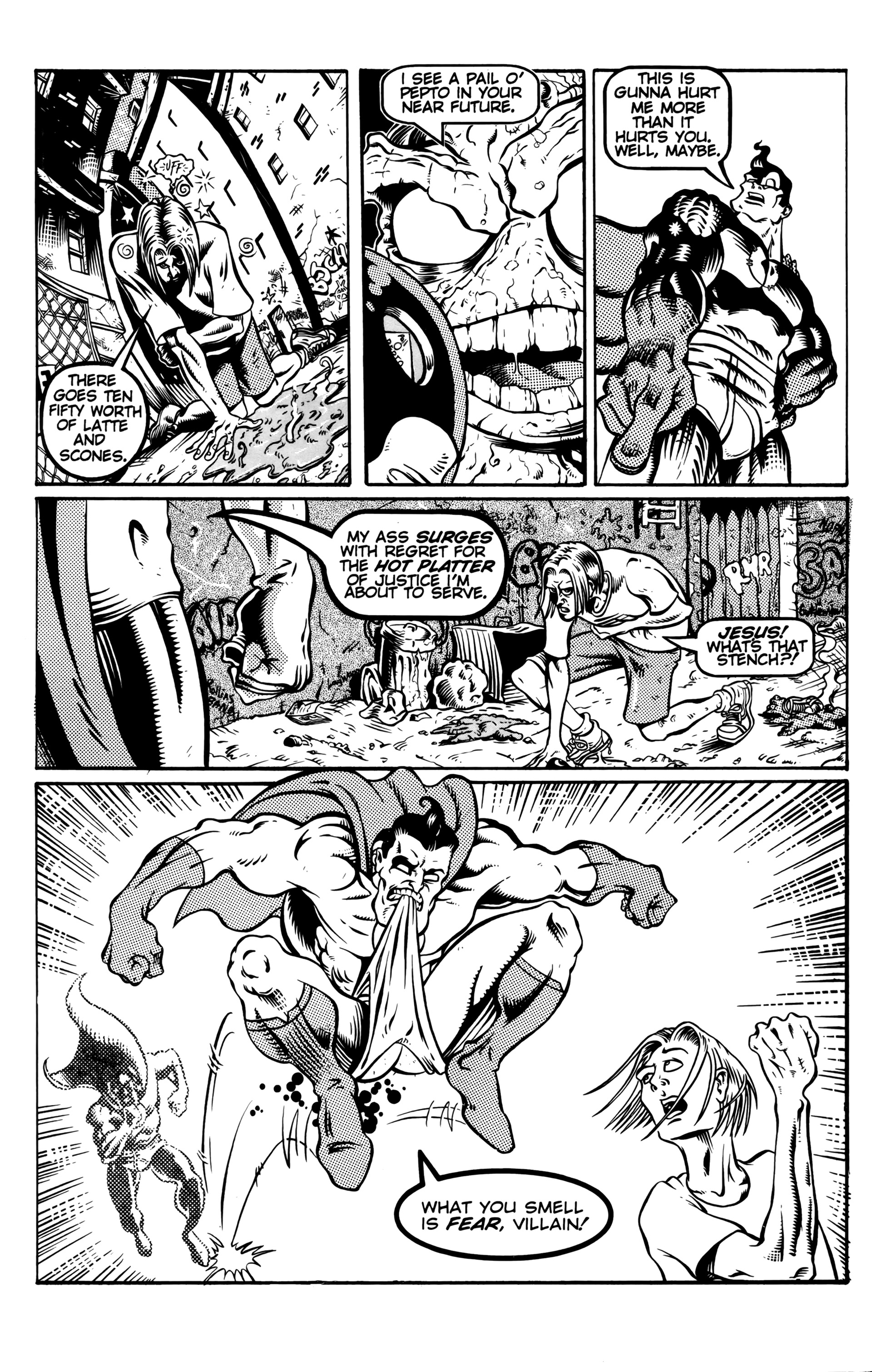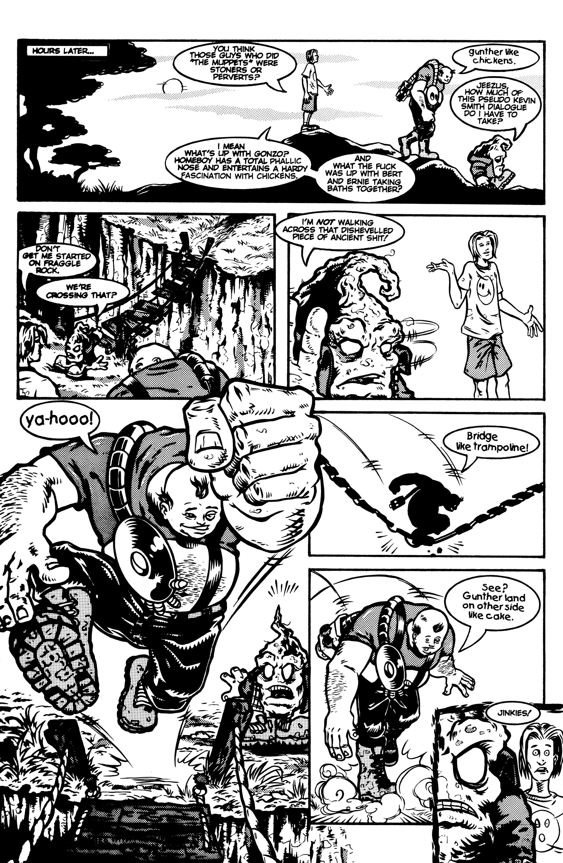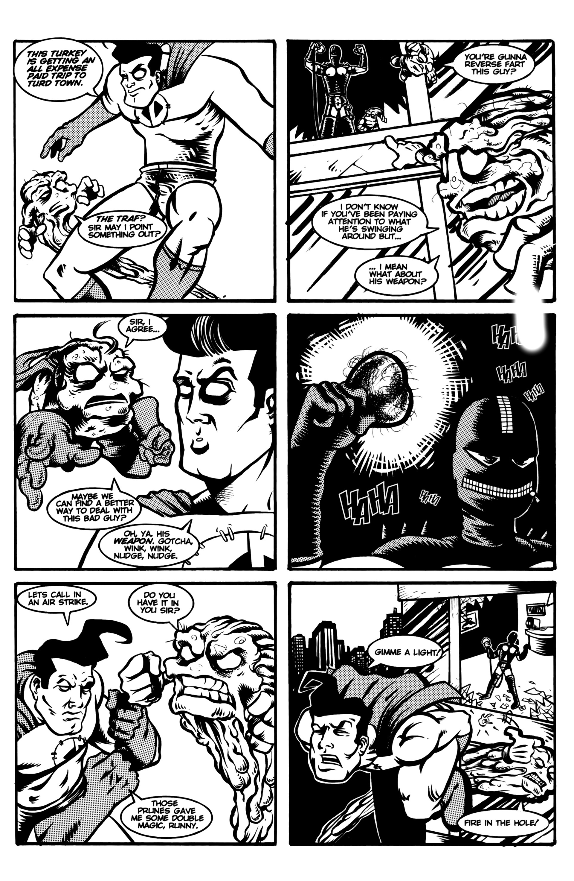 >Ah the smell of sweet justice! Caution evil-doers, Captain Dingleberry is here! Tasty art, a great adventure/comedy story, and unbelievable characters what else could you want. So drop your latest issue of Blood Blade Claw Force˛ (or whatever), and come try a happenin' heroic treat.In 1998, industry animators Rick Remender and Harper Jaten self-published a comic for four issues which would later be picked up by Slave Labor Graphics.Before Remender's Marvel work like Uncanny X-Force, Uncanny Avengers, Agent Venom, etc or his creator-owned work (which Jaten has been an editor on lately) like Black Science, Deadly Class, Low, Fear Agent, etc there was Captain DingleberryLord help us all