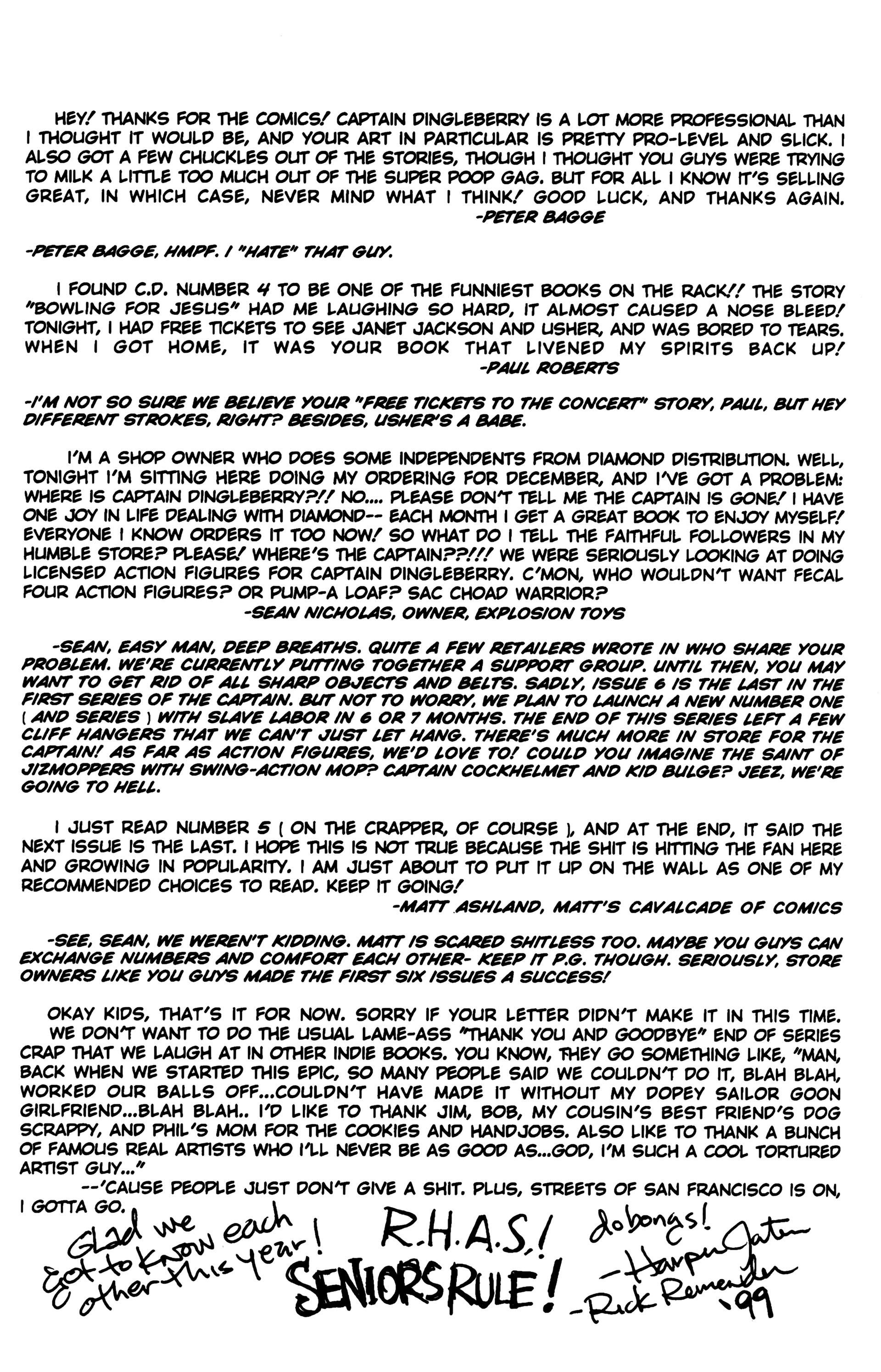 And that's the end of Captain Dingleberry aside from the one-shot, Captain Dingleberry: Sooper Spooky Goth Special which hasn't been scanned to my knowledge