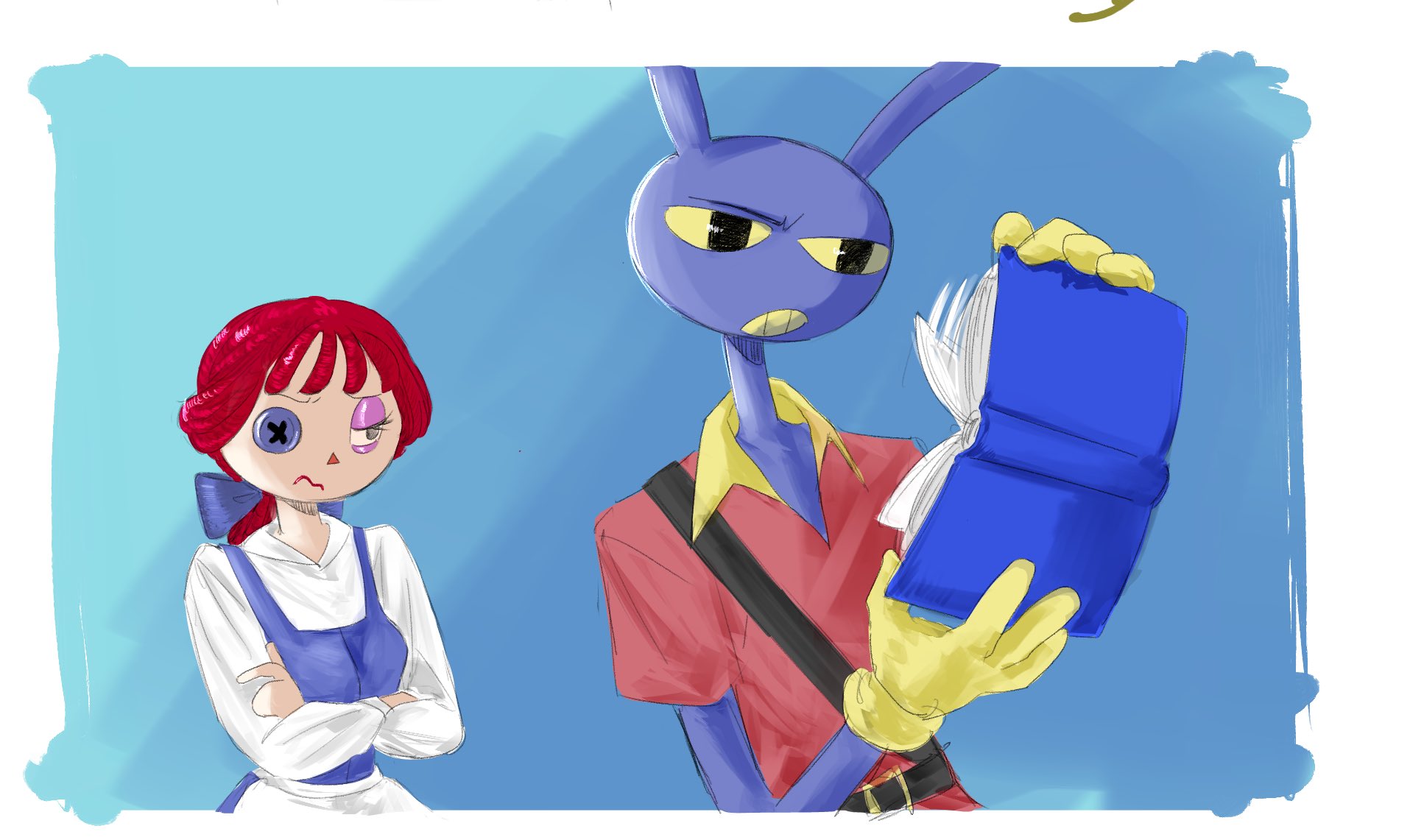 >>153295033TADC main characters have a circus or toy motif (generally)TADC side characters have more varied themes but they generally follow a formula of a cartoon animal/object/toy with some kind of central theme attached, heres some that i drew based on others characters>>153294696