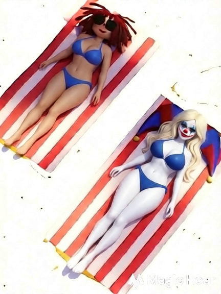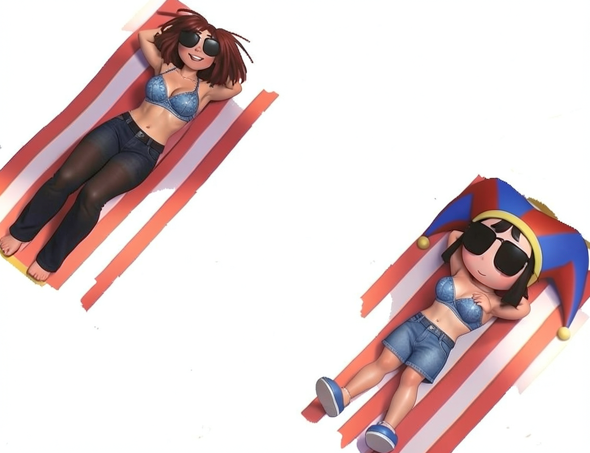 >>153296752A lot of people think ai is bad. But I feel like it gets close?Does it have problems, like adding pants to ragatha, or making pomni not white?Yes(It kind of looks like 2 girls with pomni and ragatha head pasted on)So not good.But i'd argue not bad? But i'm not sure the pants are bad? Kinda look good on ragatha...Might be best not to do let ai mess it up too much though.