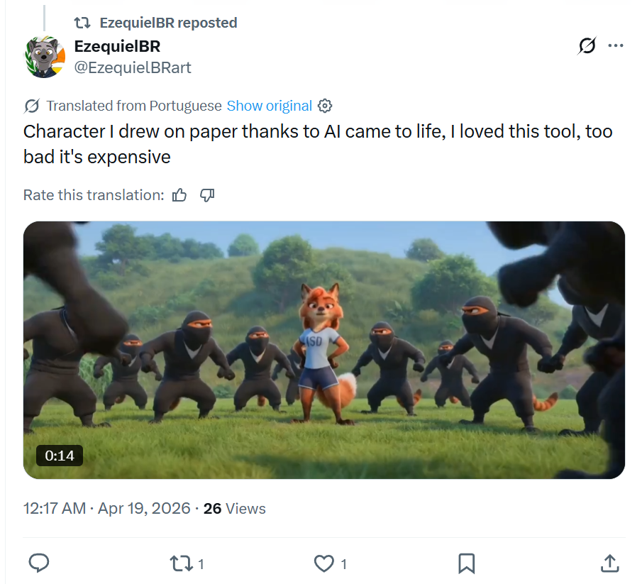 >>153332691>I just wish the thread is more about people sharing their aspirations.People are using AI to make their dream cartoons. It's more common than you think. https://x.com/EzequielBRart/status/2045718506419753228