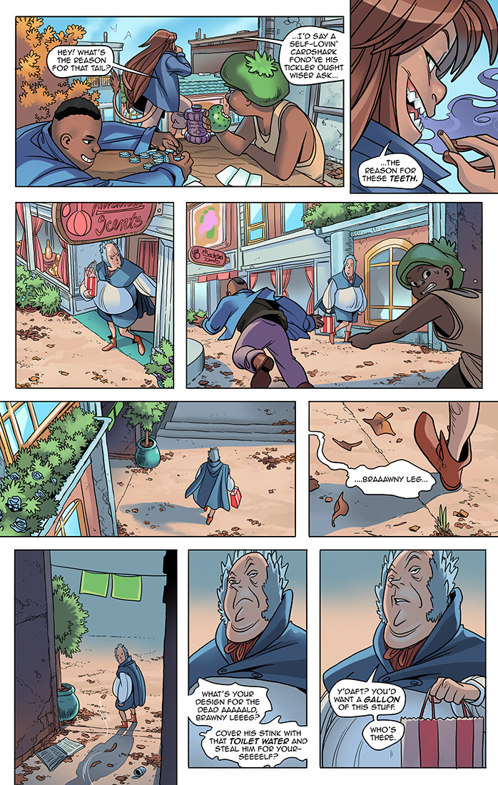 Website comment:>Alley’s haunted.>~AshleyPatreon comment:>Sette's got a mildly clever little plan brewing. She's got just enough truth and secrets to concoct a convincin' cocktail for this credulous cockerel.