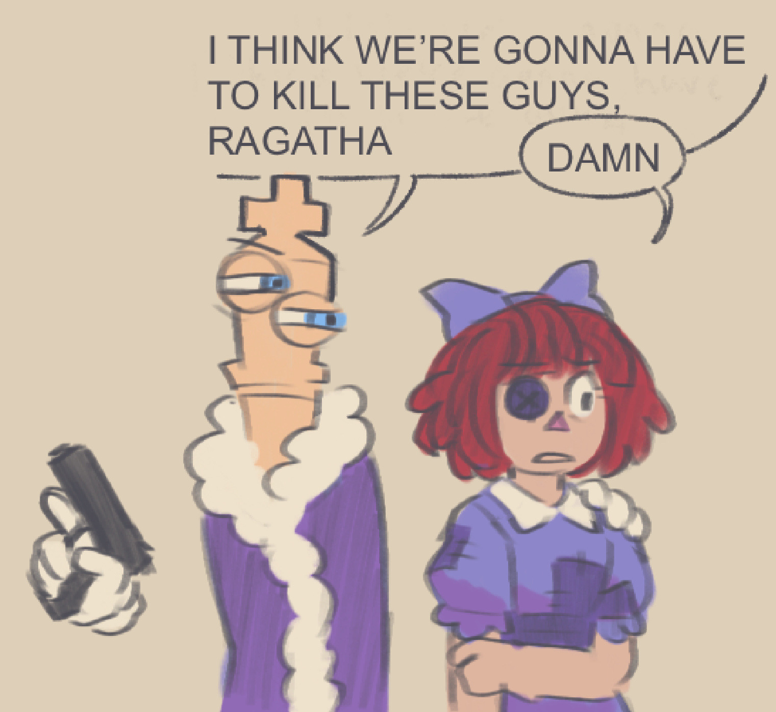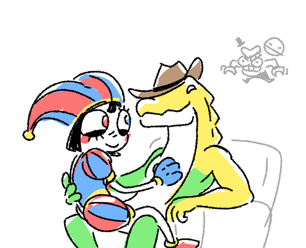 >Jax and Zooble are seen, weirdly enough, getting along for once >They're actually having a laugh together and strangely it's because of the word "nega">Gangle is watching and listening to them from a distance, sweating profusely and getting incredibly turned on