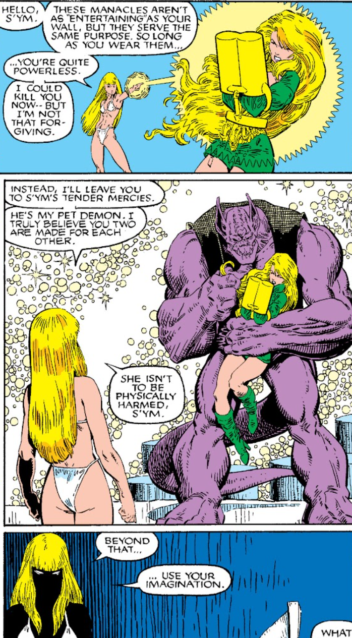 >>153347192Was it absolutely necessary for Magik to get revenge for her durance by summoning her pet demon to rape the 1333-year-old Enchantress?