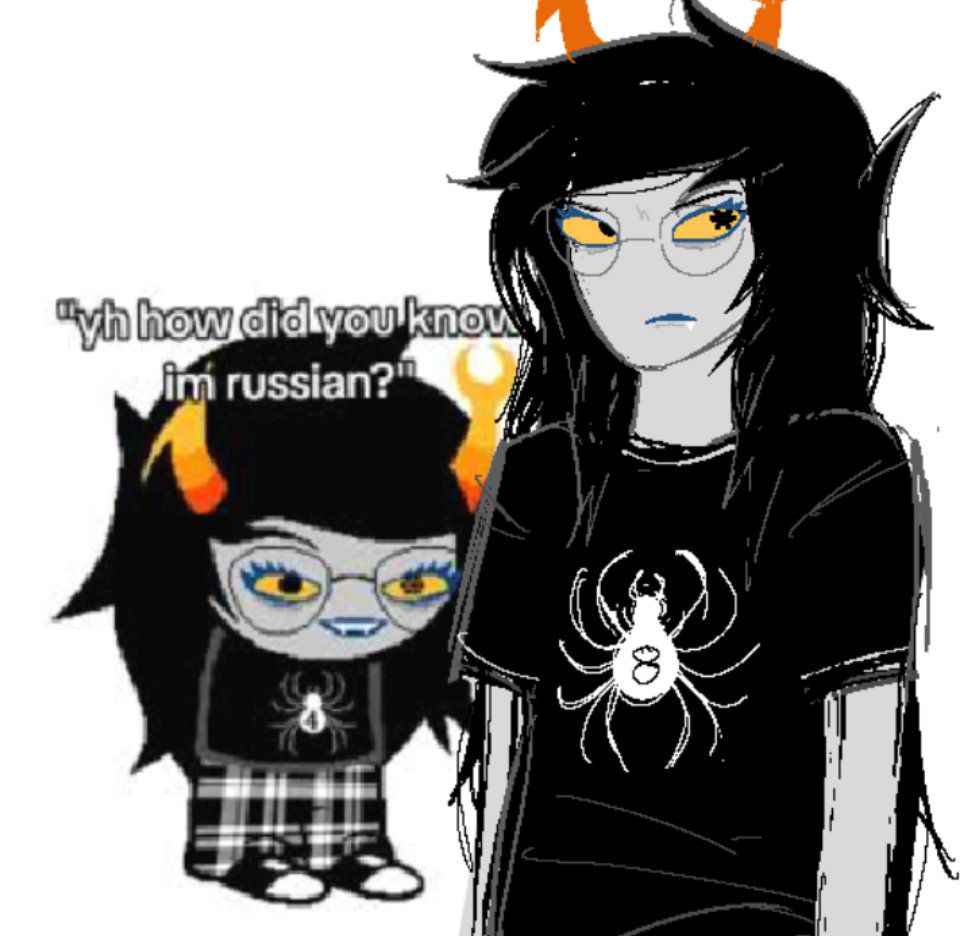 >>153347618WHY is eridan russian?!>>153347746uhh>aradia is japanese, yayoi in particular>tavros is from texas>sollux is..tsk, he has red blue and white colors and also very pity...iunno>karkat is a jew>nepeta is russian>kanaya is british, fancy kind or french>terezi is a huge slav, maybe serbian >vriska is RUSSIAN>equius is ukranian>gamzee is nyc wigger>eridan is BRI'ISH>feferi is from hyperborea i don't like to imagine my trolls b r o w n