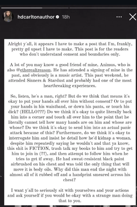 >>153353779Biggest sexual harassment scandal last year happened in women's romance book festival. Half-naked male dancers wearing monster masks got mobbed by an army of fat women. One of them got an Airtag slipped on his pocket so some stalker managed to find out which hotel room he was sleeping in.