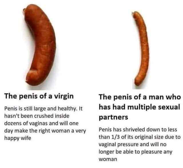 >>153355786>The penis of a virgin is small and weird>The penis of a man who had multiple sexual partners is huge and super long and the camera needs to move away to capture the full thingWoah