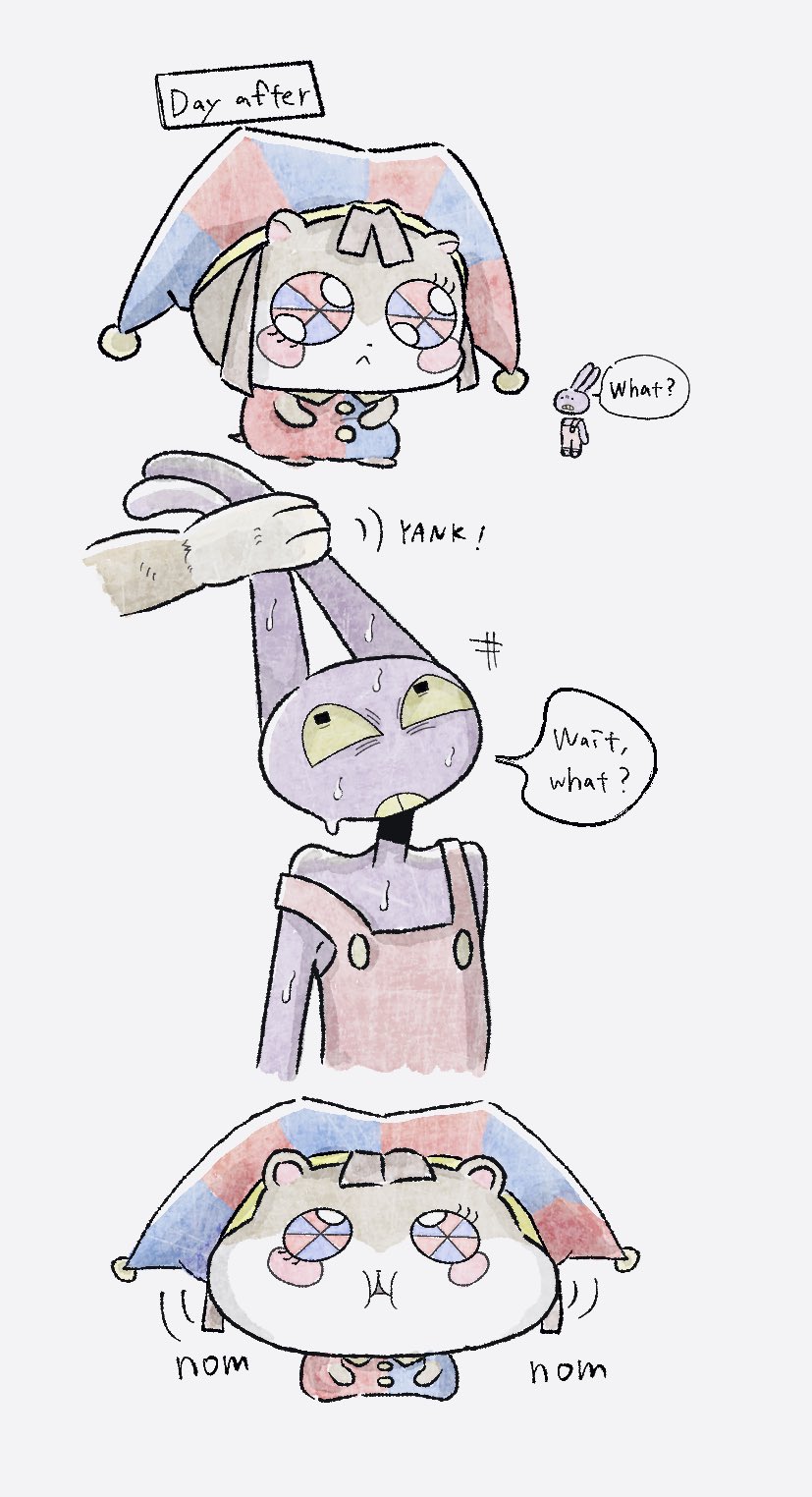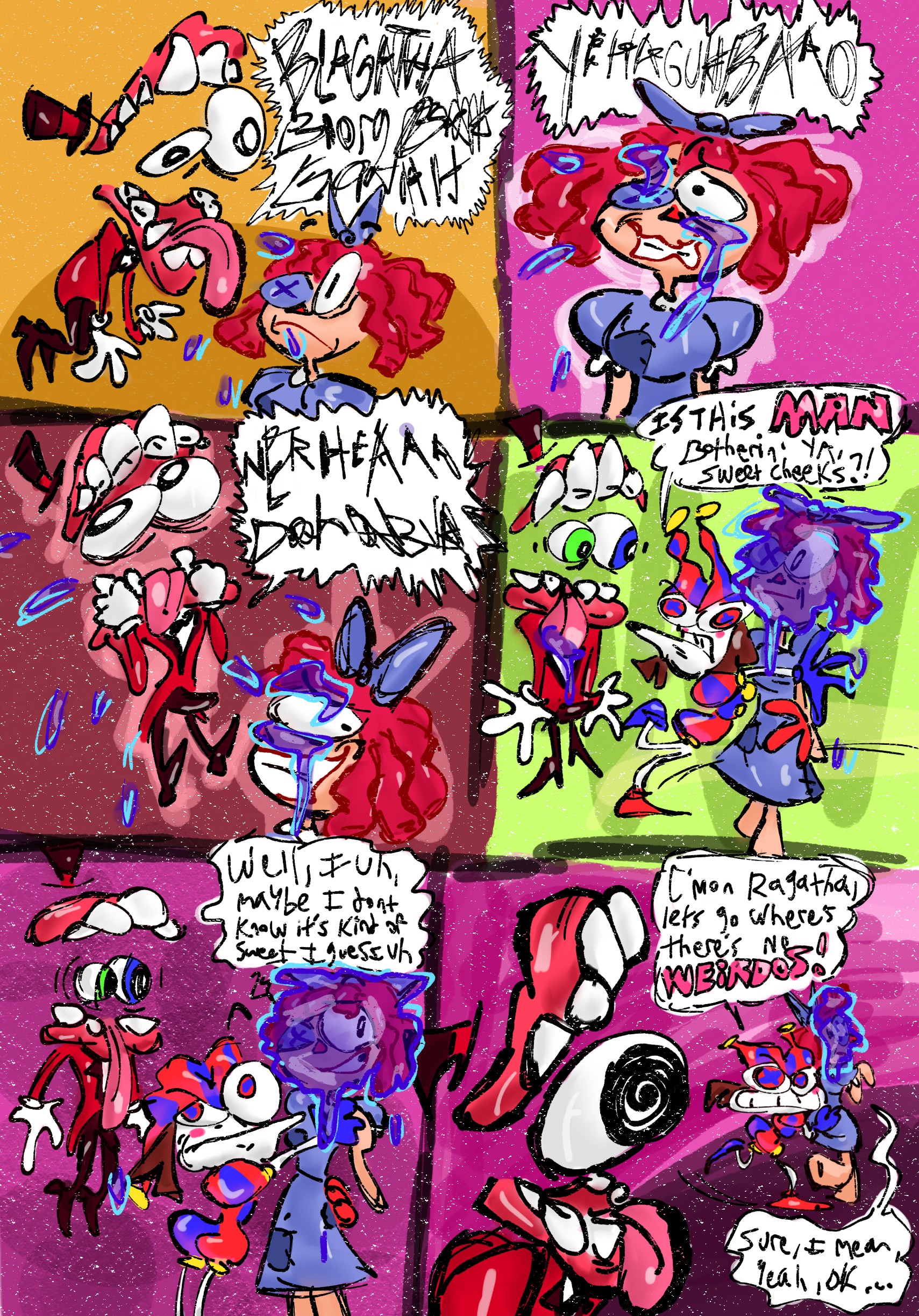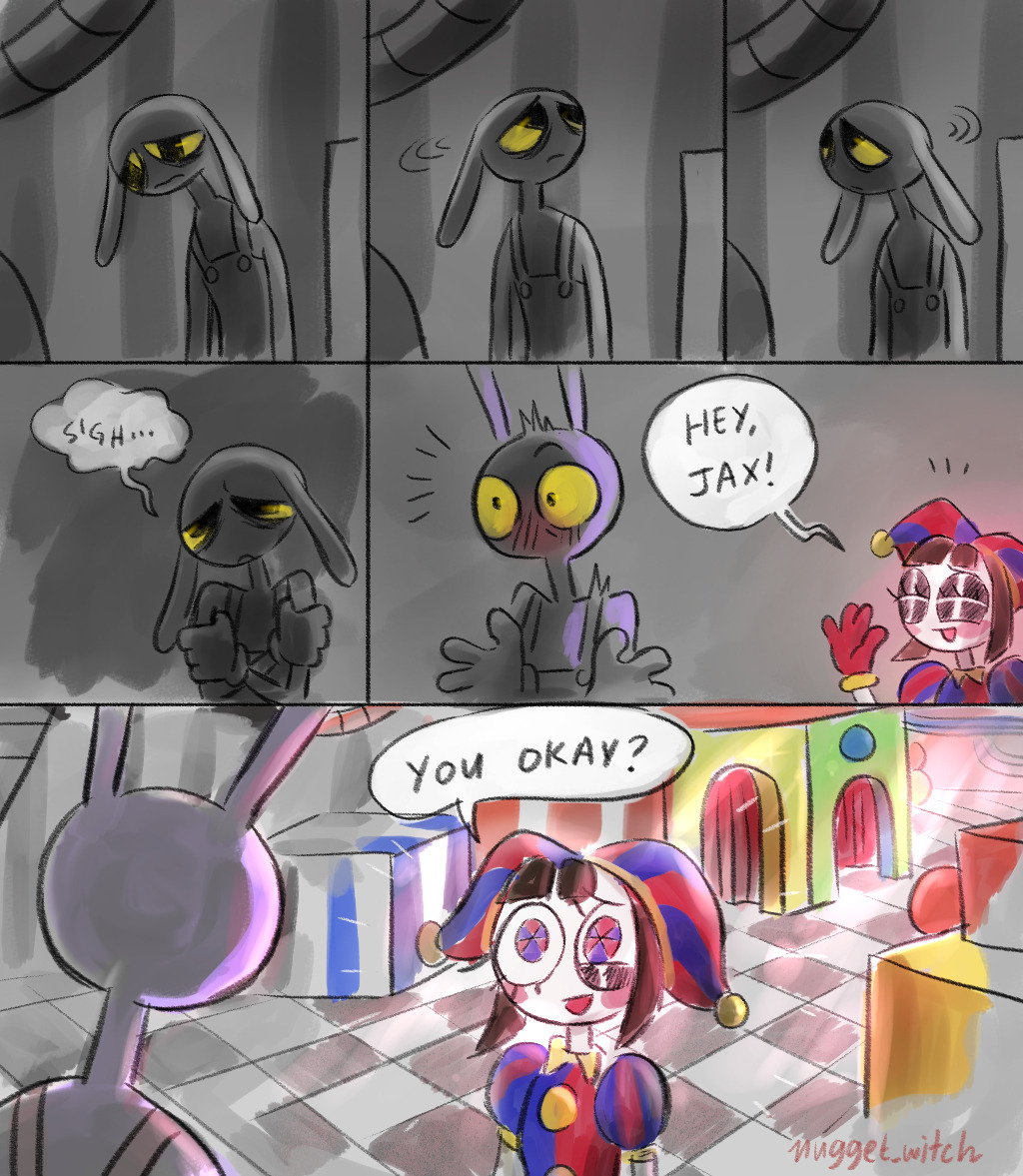 I want to ask, has anyone got those comic pictures?Something about Jax burst into Pomni or Ragatha's bedroom, where they're doing tribadism scissoring together, and Jax placed a centipede inside to scare Ragatha.