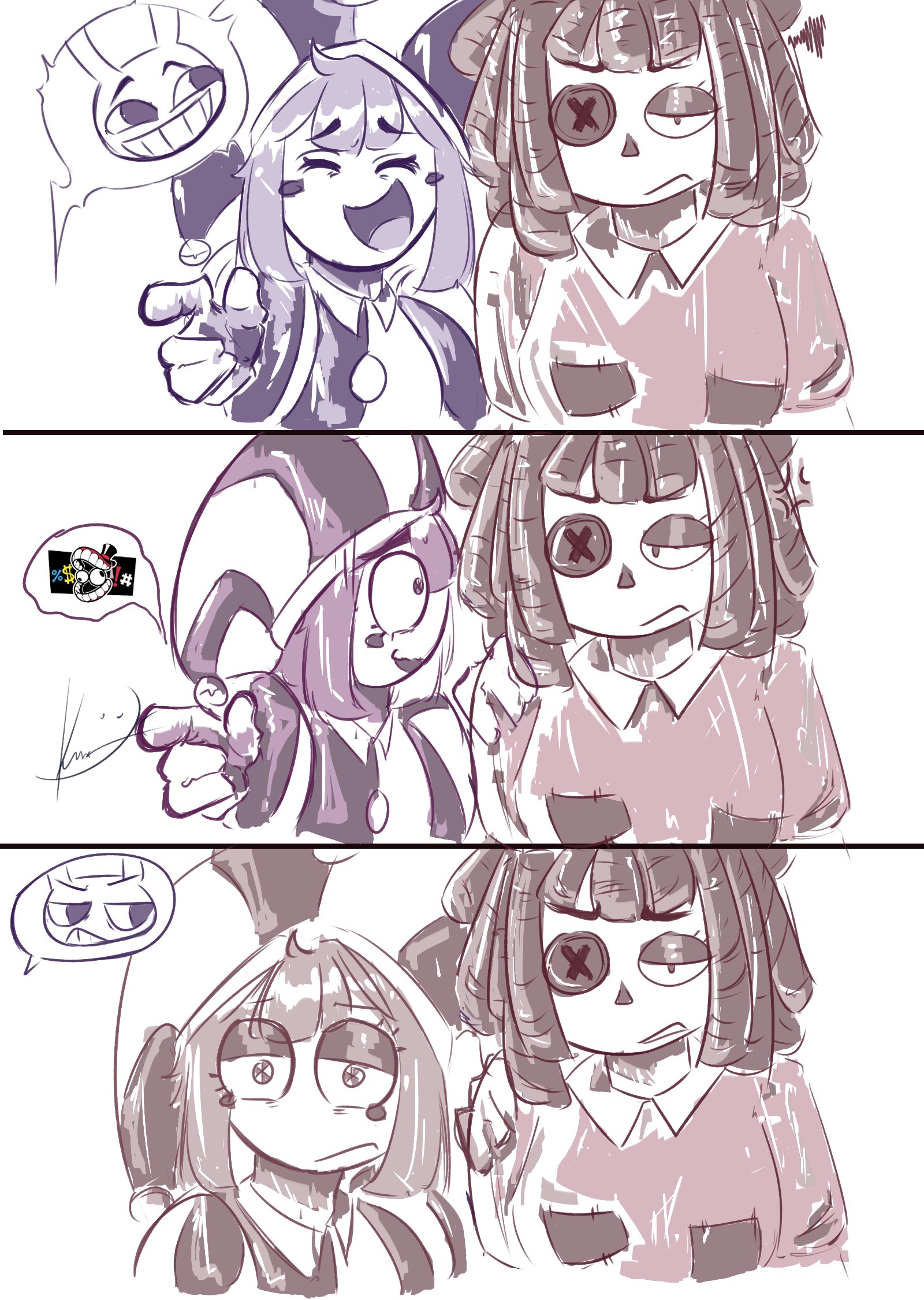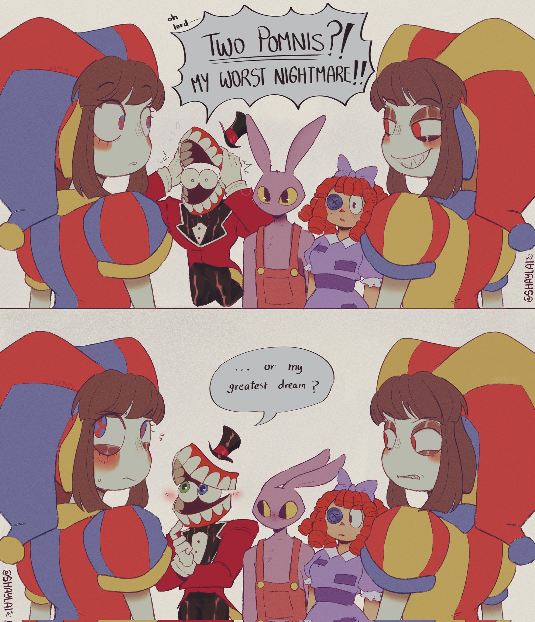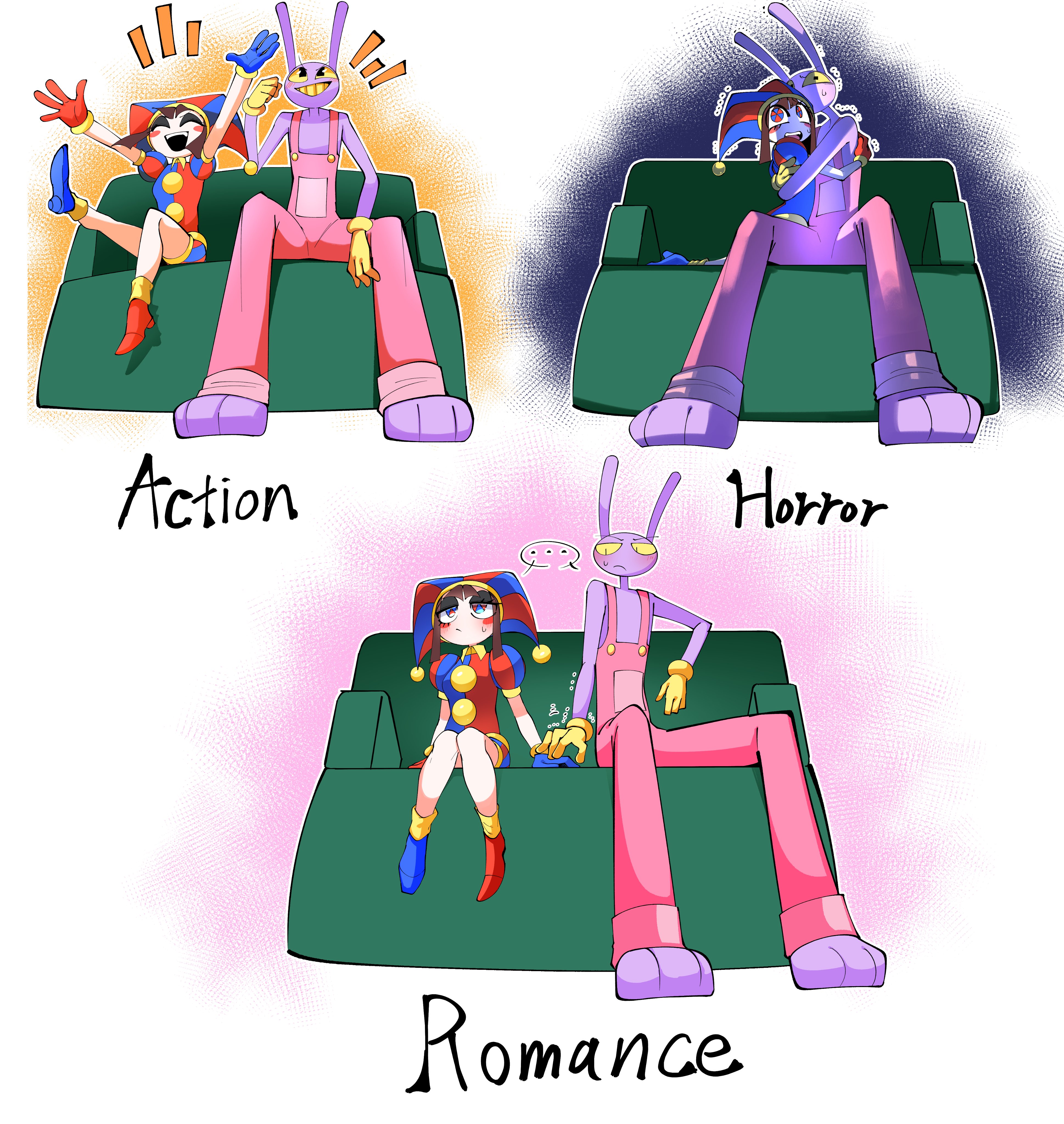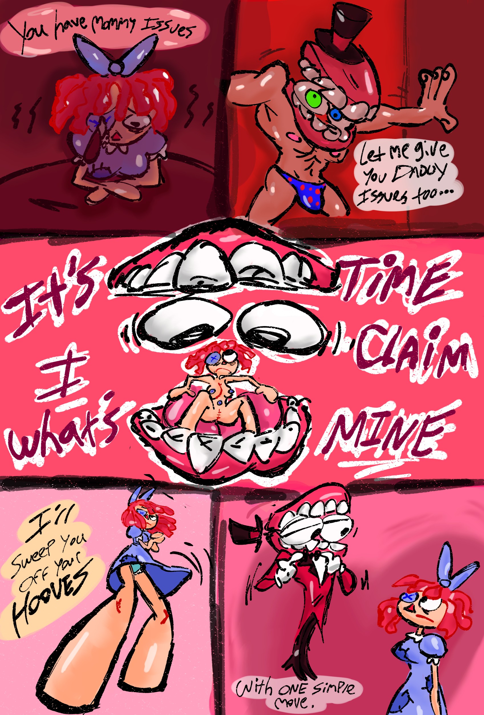 I want to ask, has anyone got those comic pictures?Something about Jax burst into Pomni or Ragatha's bedroom, where they're doing tribadism scissoring together, and Jax placed a centipede inside to scare Ragatha.