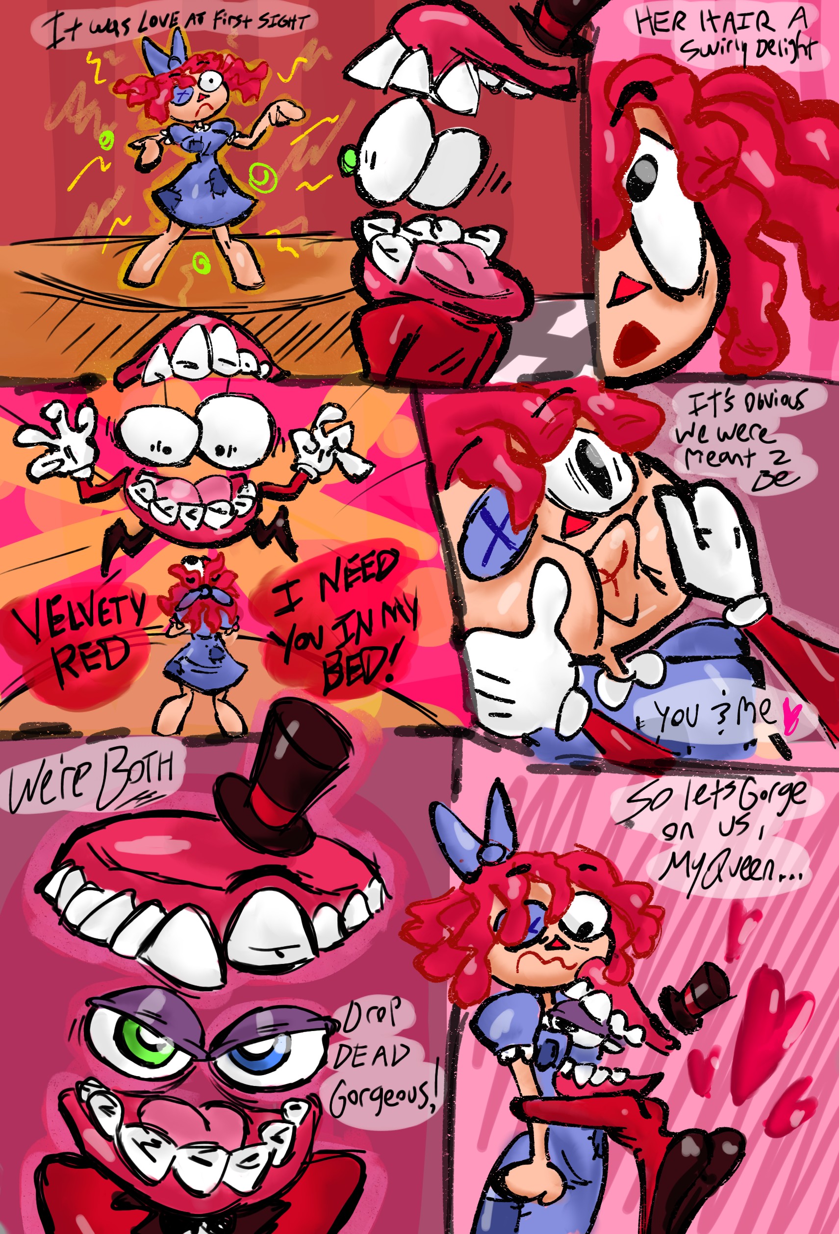 >>153356059>>153356078You mean to tell me you DON'T want to fuck Caine?Erm... Ok...>>153356074I wrote it out myself, this is actually the first one of these that I wrote first instead of writing while drawing.>>153356084Shhhh