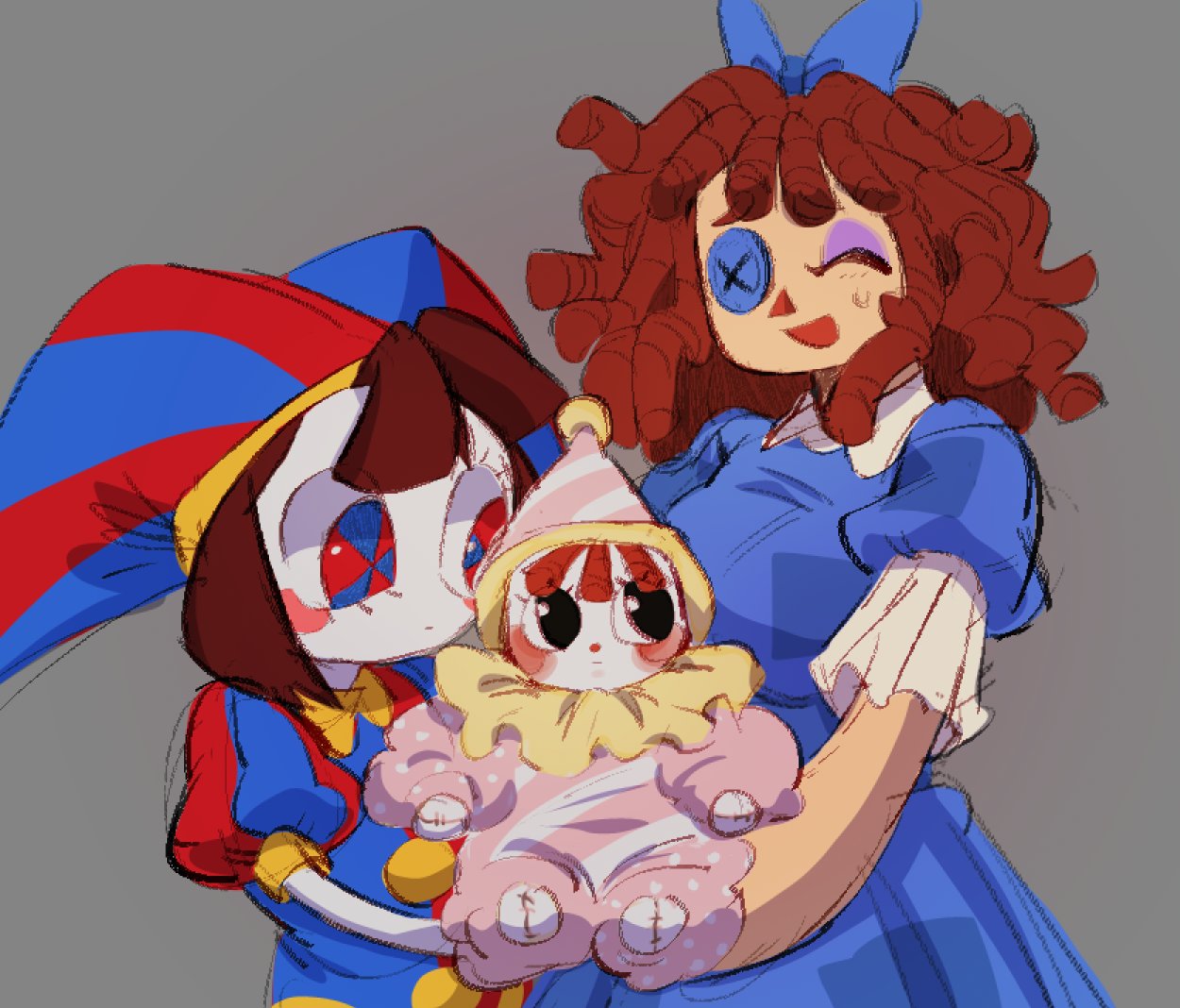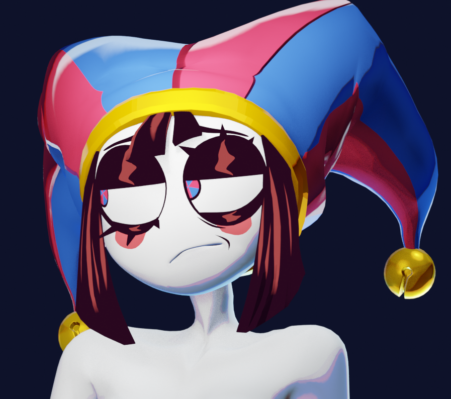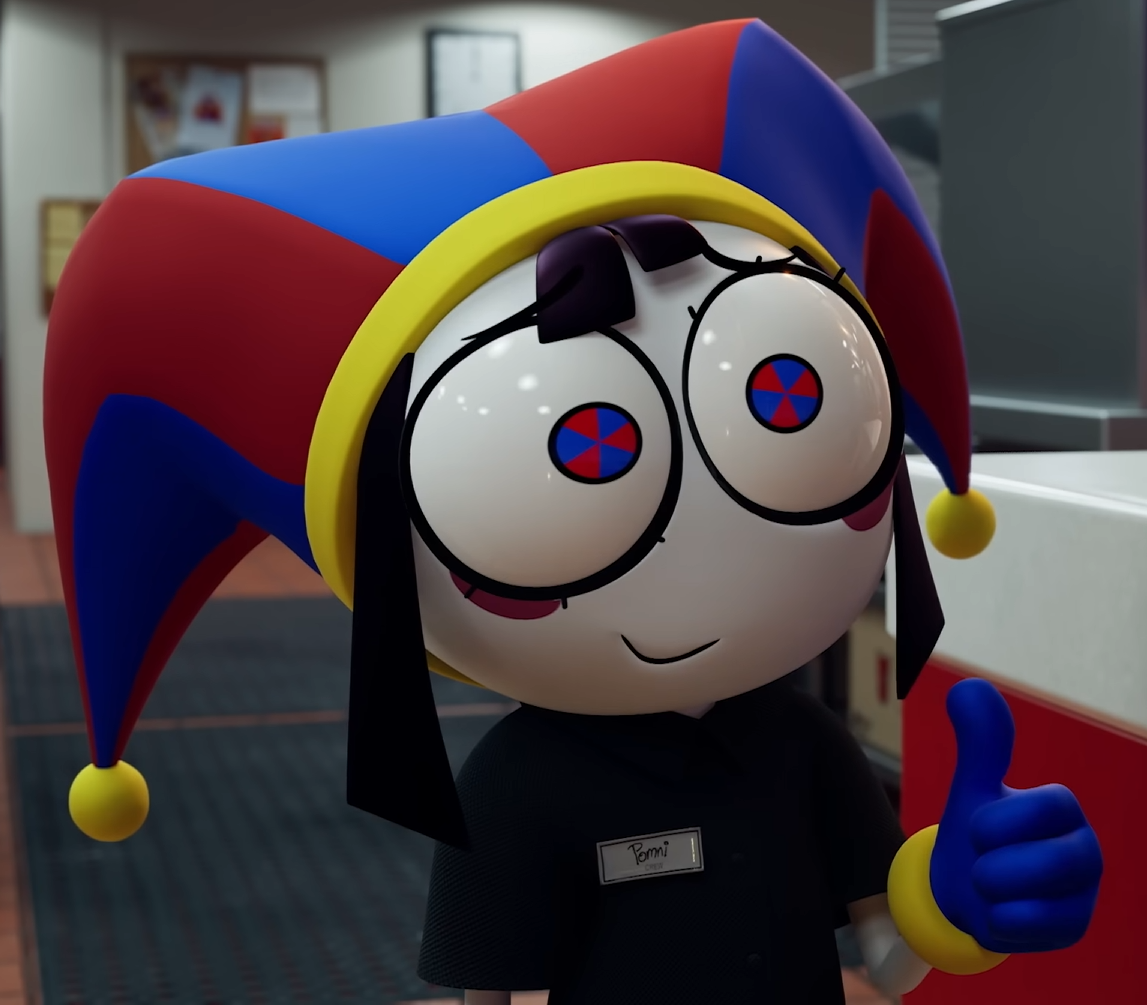 Pomni has a very good character design. The only thing I can think of to improve it is that she should have had two-tone shows like Tails from Sonic. The red one should have been blue at the base and the blue one should have been red at the base. It would have looked better.