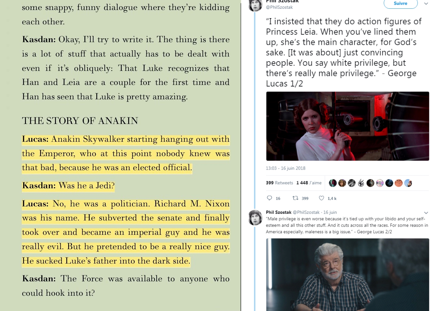 False equivalence since Leia wasn't meant to upstage the male cast