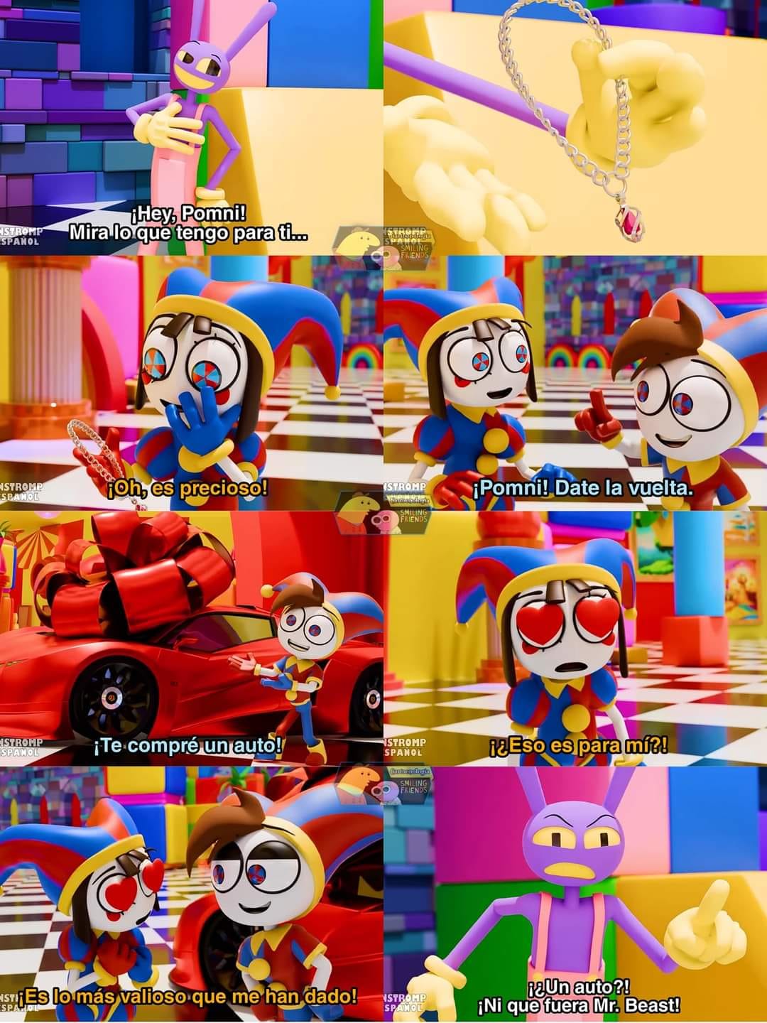 >>153362375Una animación nos muestra que el próximo integrante de Digital Circus será un chico que se parece mucho a Pomni. Pomni inmediatamente se enamora de él, pero Ragatha también, lo que hace que ellas dos empiecen a competir por el amor de él. El chico le comenta a Jax que le encantaría jugar el nuevo GTA 6, por lo que Pomni escucha esto e inmediatamente va, lo compra y se lo regala. Pero luego llega Ragatha, quien no solo trae el GTA 6 sino que le trae toda la colección de esta franquicia. Luego, mientras el chico nuevo y Jax están jugando, comentan que les está dando hambre, a lo que una vez más Pomni escucha esto y va y les prepara unas deliciosas galletas. Lamentablemente, Ragatha ya se le había adelantado y les había dado todo un bufet de comida, por lo que Pomni ahora sí sintió que definitivamente había perdido la atención de este chico y Ragatha se lo había ganado. Afortunadamente, el chico se da cuenta de que Pomni está triste y va inmediatamente a consolarla. Un final muy feliz para Pomni.