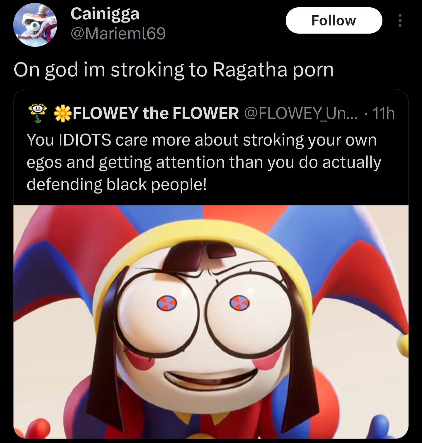 >>153366246>posting a pic of Pomni shit stirring in order to distract Caine while pretending to be making a sincere point