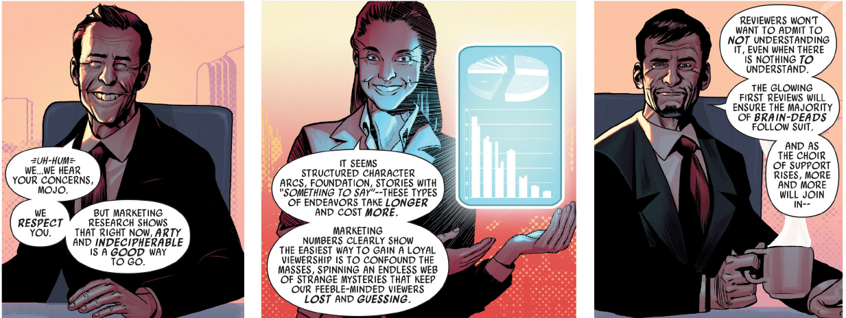>>153395304Yeah, that's Morrison. Didn't even try to dumb himself down to at least seem like Millar.