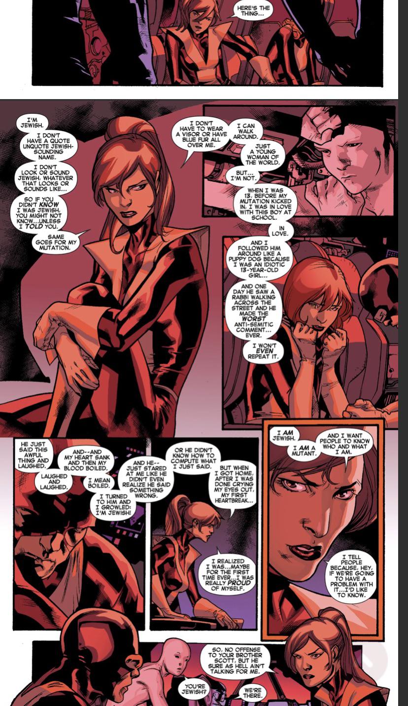 >>153385526Because Bendis, a completely secular Jew, is virtue signaling here while at the same time demonstrating he never read the Claremont run. Kitty's a nouveau riche JAP from Chicagoland who was immediately recognizable from her first appearance, her first arc was about discovering she belonged to a non-privileged group that HADN'T assimilated and WOULD be hated and feared for it.