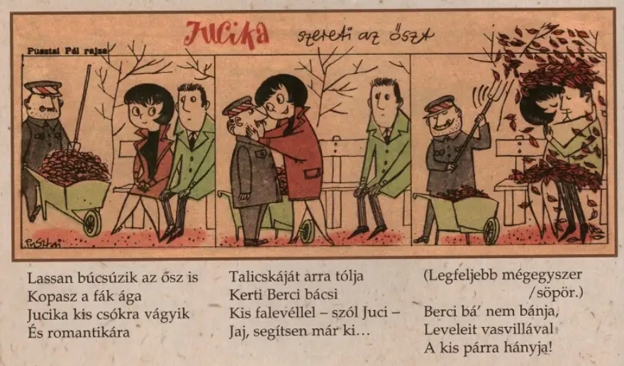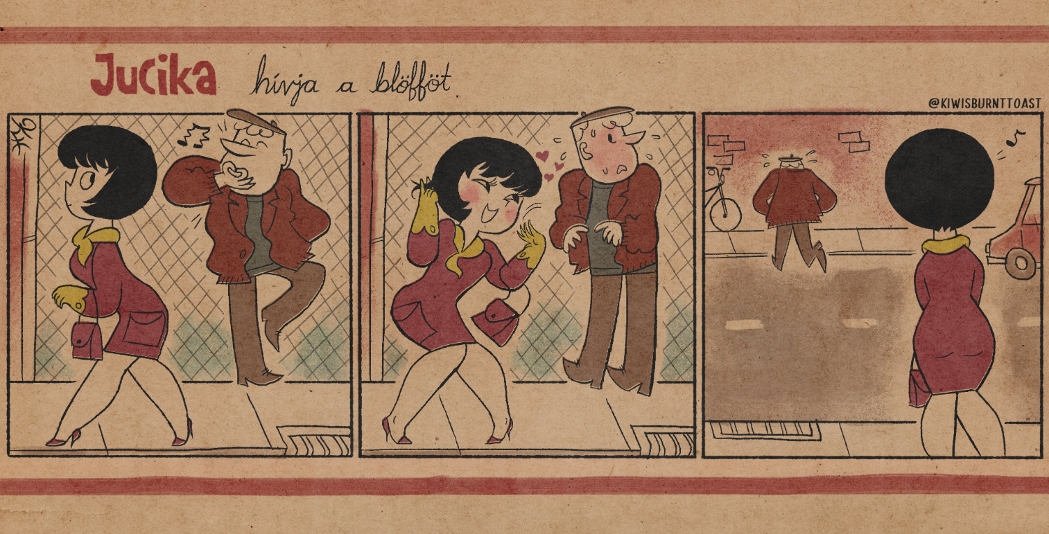 >>153389513I read somewhere years ago that her rights are owned by the state. There's been two official but incomplete books. One's called Fondorlatos Jucika, a collection of short poems written for 50 strips. Some of the poems name the incidental side characters and give dialogue to Jucika. This book was made in 1970 but it got cancelled after the artist's death and only came out in 2009. It was released by the Püski publisher but the copyright info in the book only credits the artist and the poet.The more recent strip collection from 2022 is published by kilencedik.hu but it only contains the early black and white strips from 1957 and '58. It was re-released this year bilingually but there's been no news of a second part.The 57-58 and 59-70 strips were published by two different magazines, Érdekes Újság and Ludas Matyi, both of which ended decades ago. I don't know if this means the two Jucika eras have different owners or if all the Jucika strips are under the same ownership. I don't think the publisher explained why they haven't reprinted the later strips, though maybe I didn't look hard enough.I also read that some of the Ludas magazine's former workers tried to reprint all the strips a few years before the 2022 booklet but they didn't have any good quality copies of the magazine. They reached out to a magazine collector who collected most of the Jucika strips but he refused to help them out.