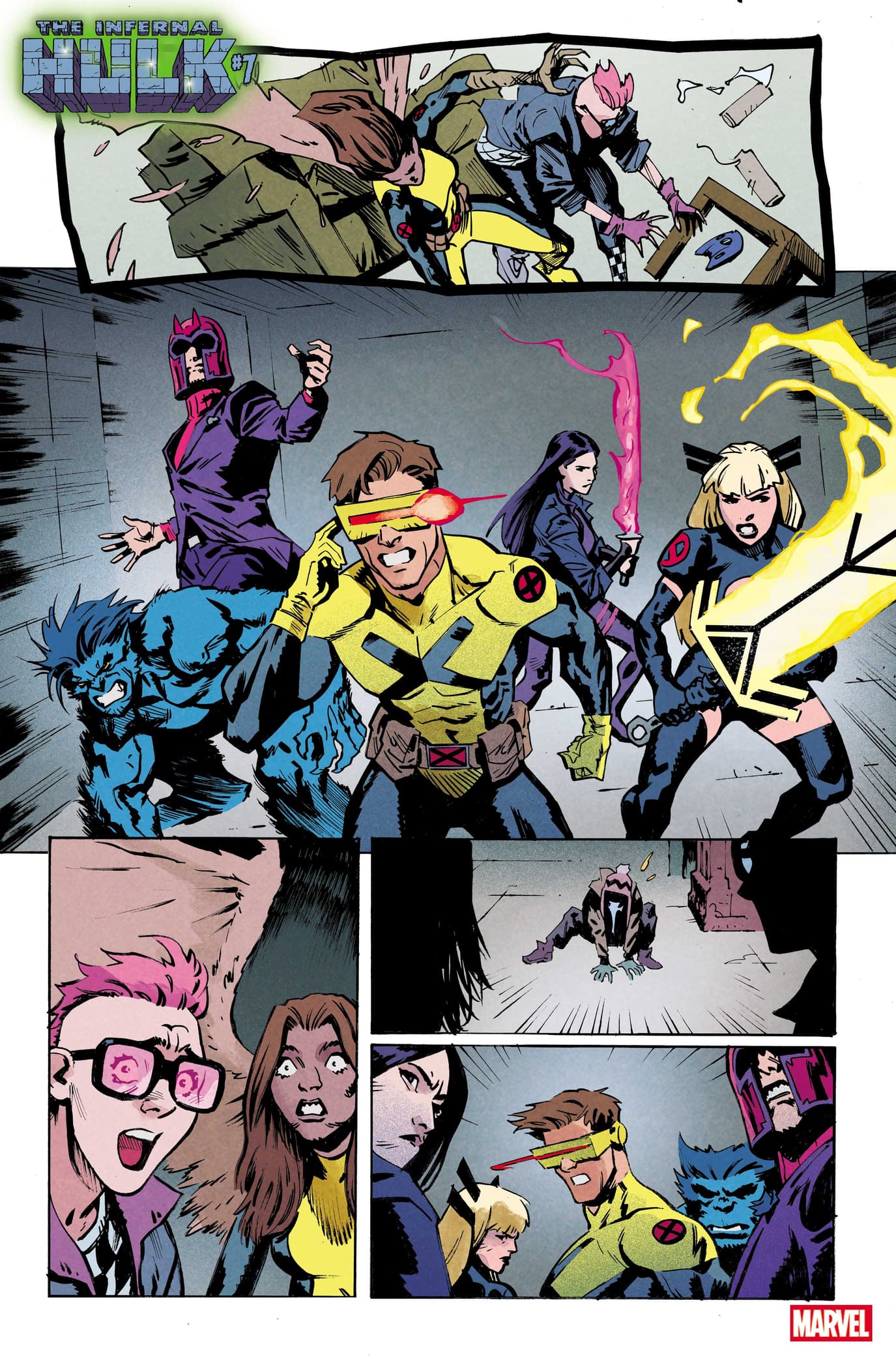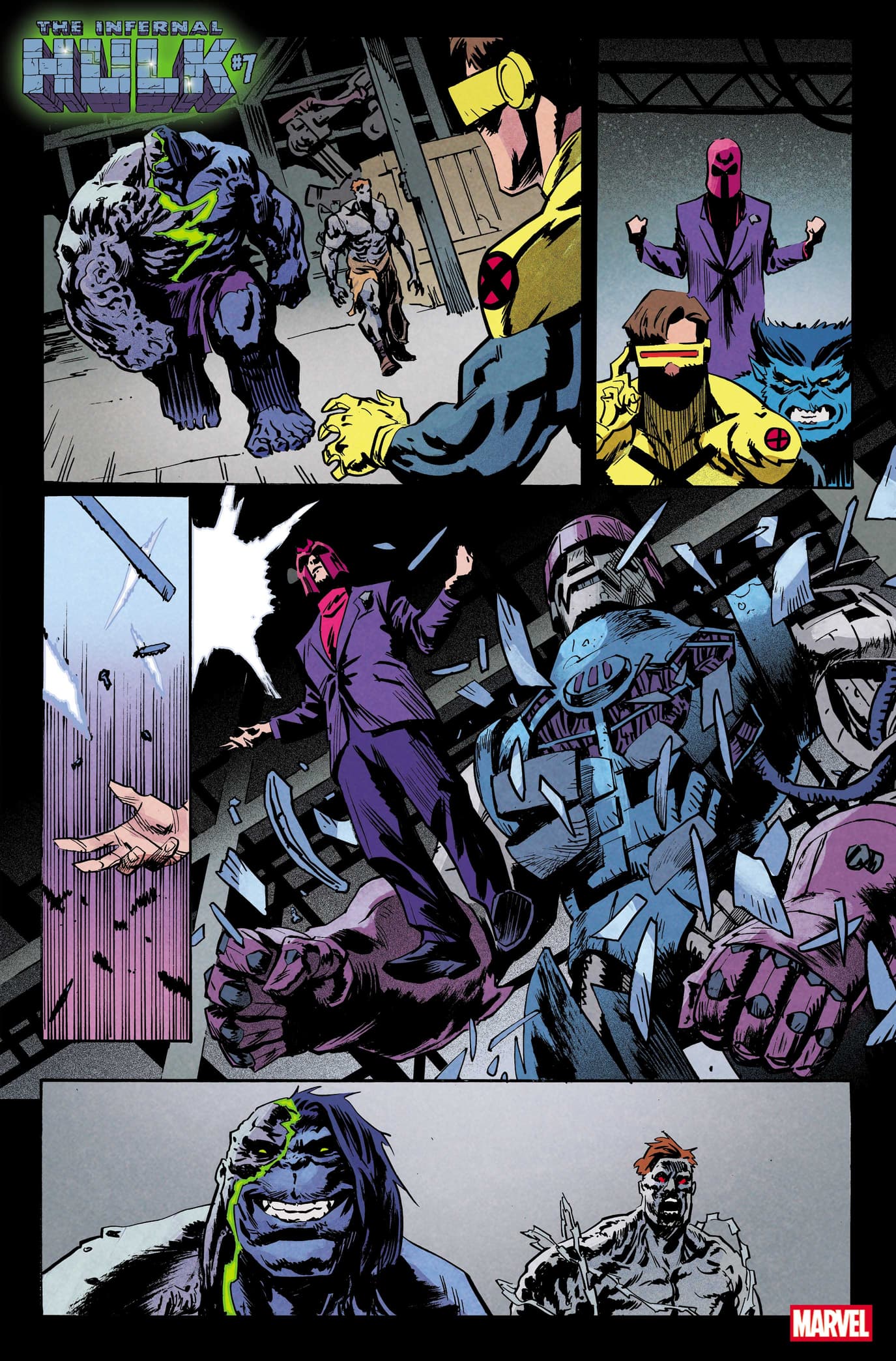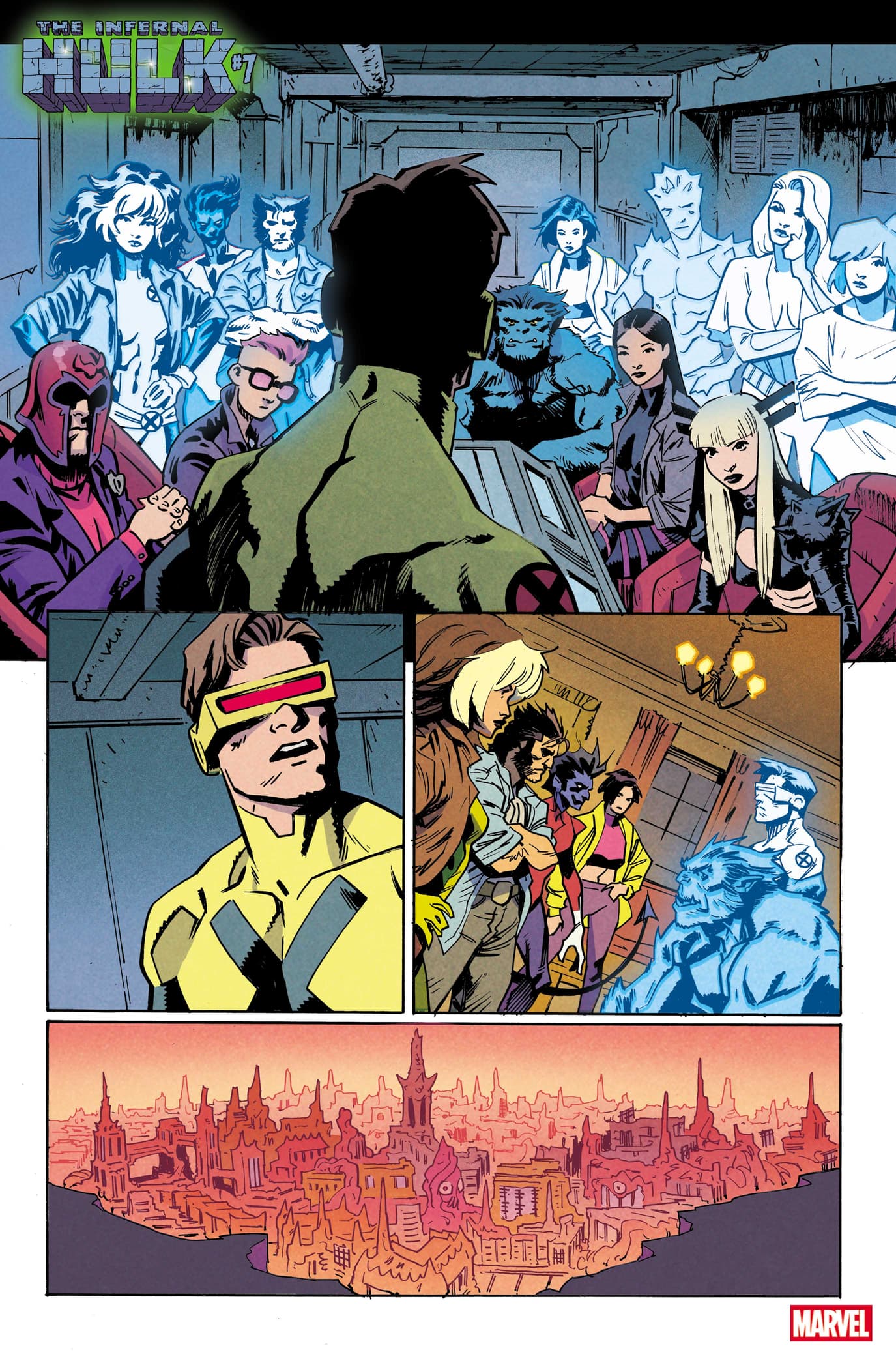 >In the INFERNAL HULK (2025) epic that Phillip Kennedy Johnson and Nic Klein started in INCREDIBLE HULK (2023), an ancient entity called the Eldest ripped Bruce Banner and the Hulk apart, taking over the monster’s body to become the Infernal Hulk. Now, Infernal Hulk plans to use the Hulk’s strength to rebuild the world in his dark image, kicking off the Age of Monsters. Brace yourselves as the King of Horrors unleashes his rage on the Marvel Universe, concluding in the earth-shattering event, HULK WAR, coming soon.>After taking out some of Earth’s Mightiest Heroes, the Eldest transformed a town into the monstrous Living City, turning its human residents into his ghoulish followers. With his growing power, the Infernal Hulk wants to recruit mutants into his horrific army, but X-Men like Magik and Cyclops aren’t exactly on board with his sinister plans. In INFERNAL HULK #7 by Phillip Kennedy Johnson and Adam Gorham, Cyclops, Magneto, and the X-Men get ready to battle the Eldest as he pays the team’s Alaskan base a visit.>See Eldest face off against the X-Men in the INFERNAL HULK #7 preview below!