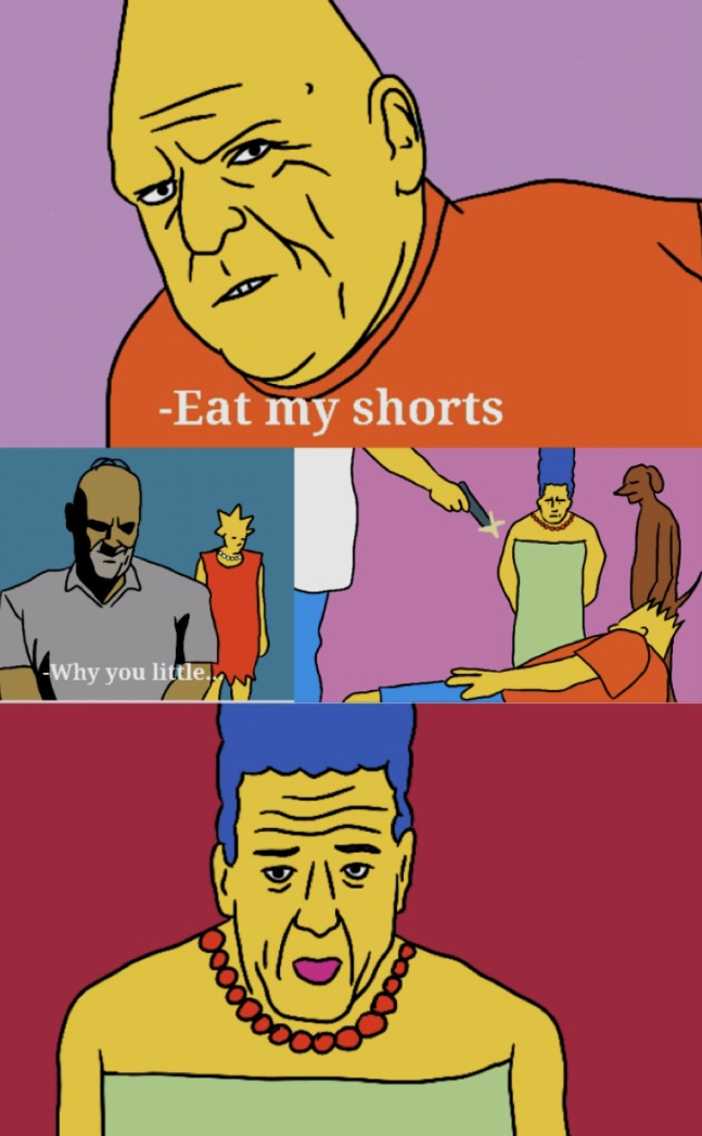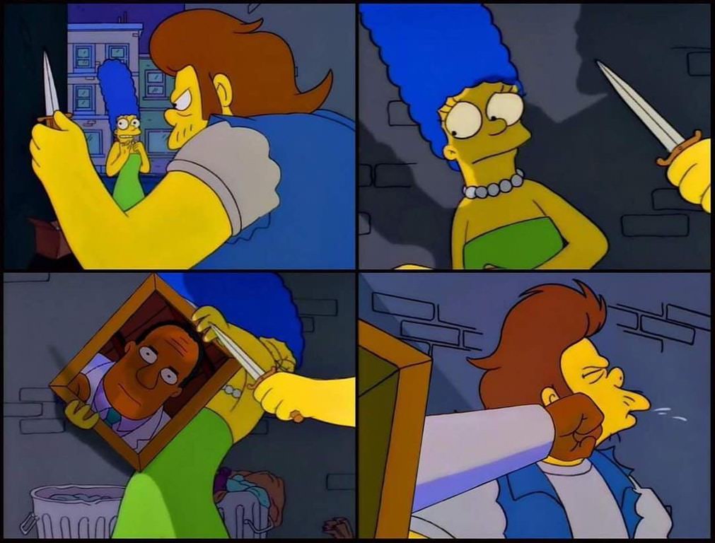I still dont know of these mash-up style Simpson memes have a name for the format, but I love them.