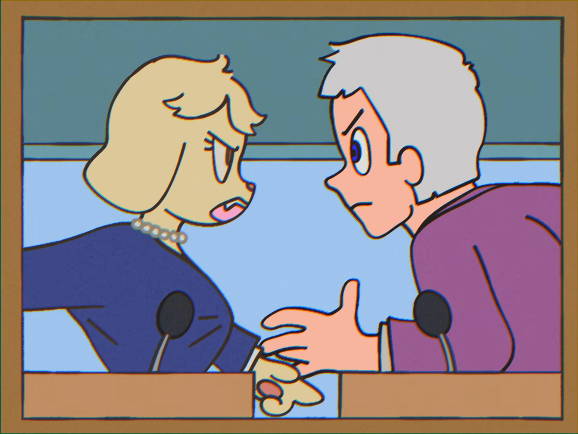 >>153385372>>153388383>>153388742The punchline is supposed to be that even though they're political rivals they are actually conspiring together in order to keep the goys divided.
