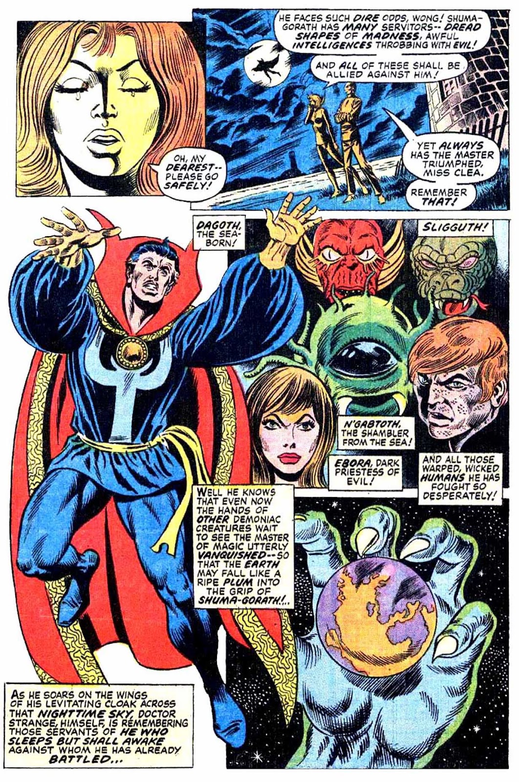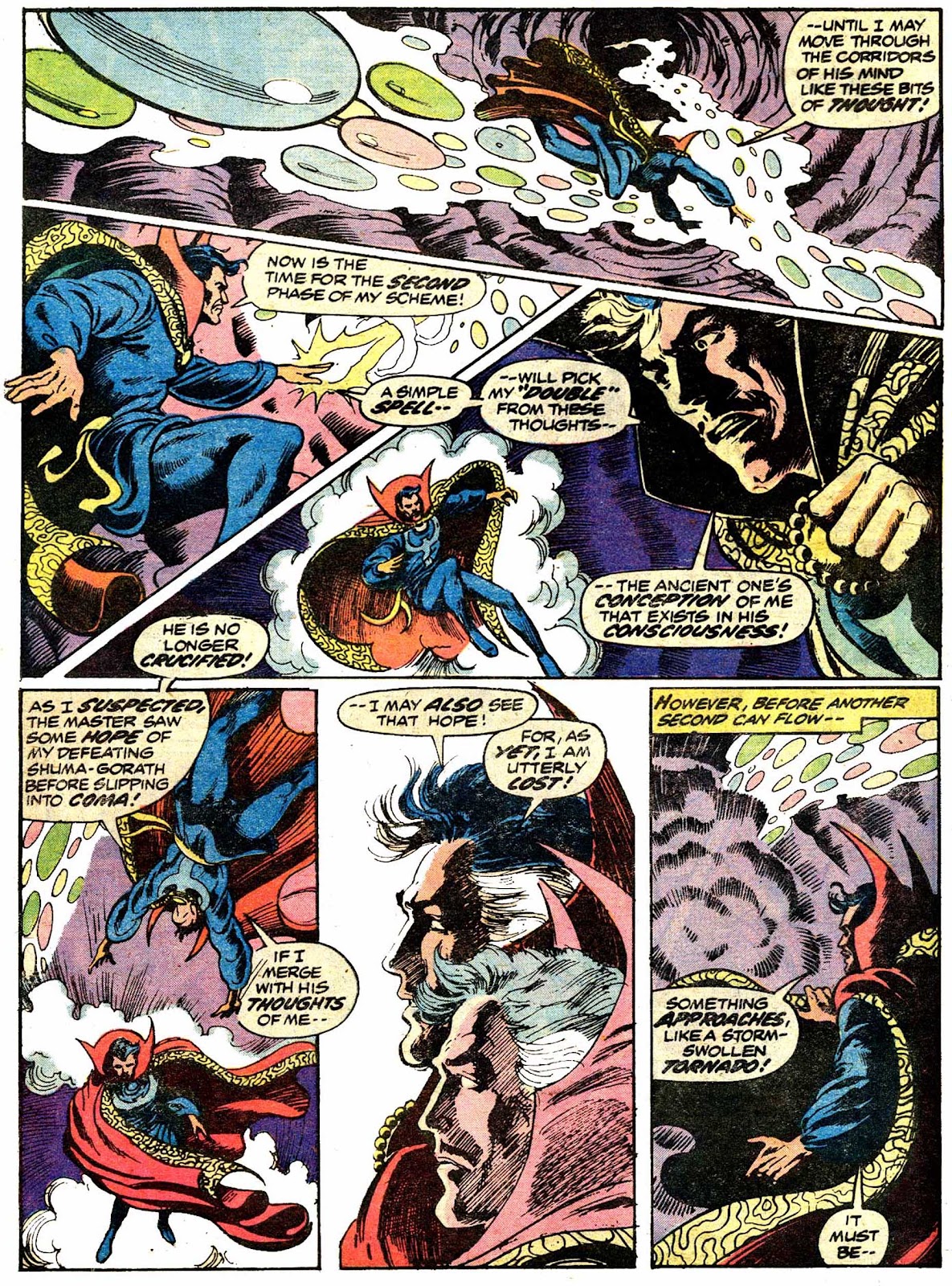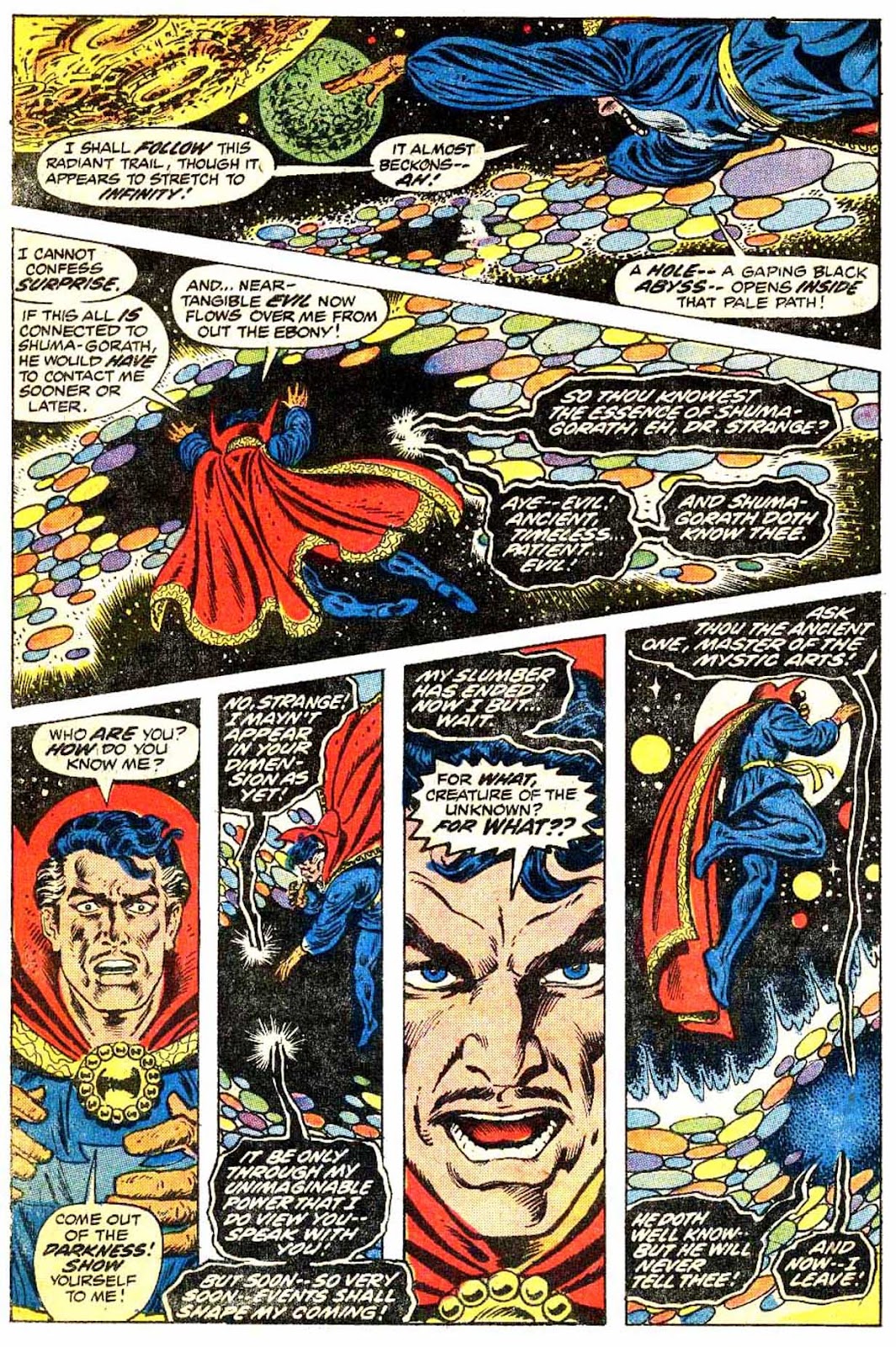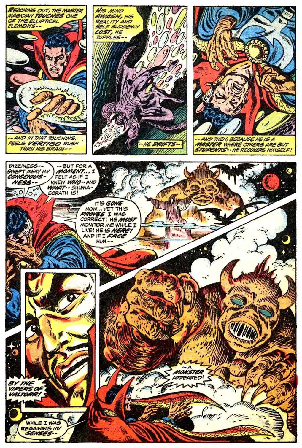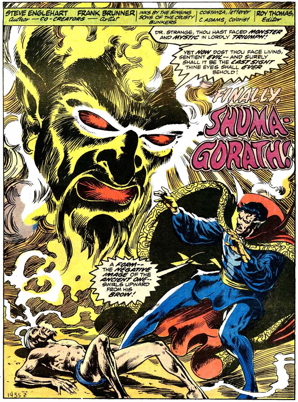 Shuma-Gorath realizes what Strange has done... and even he is intimidated! As he approaches his destination, the master of the mystic arts is wracked with apprehension...