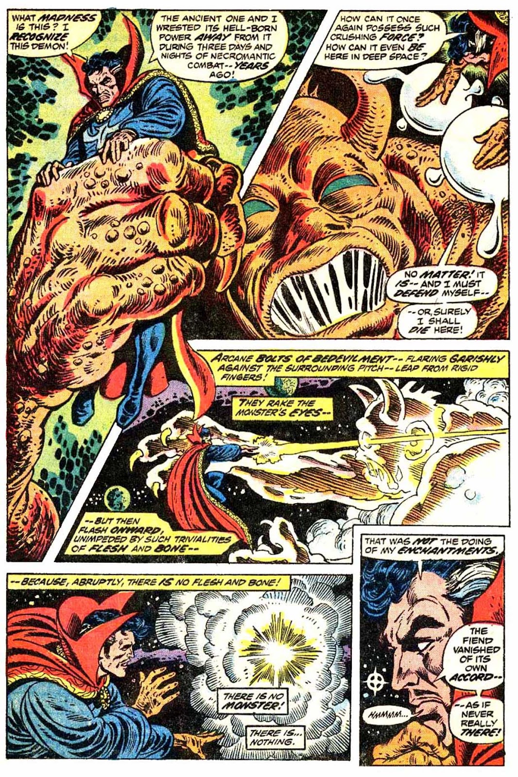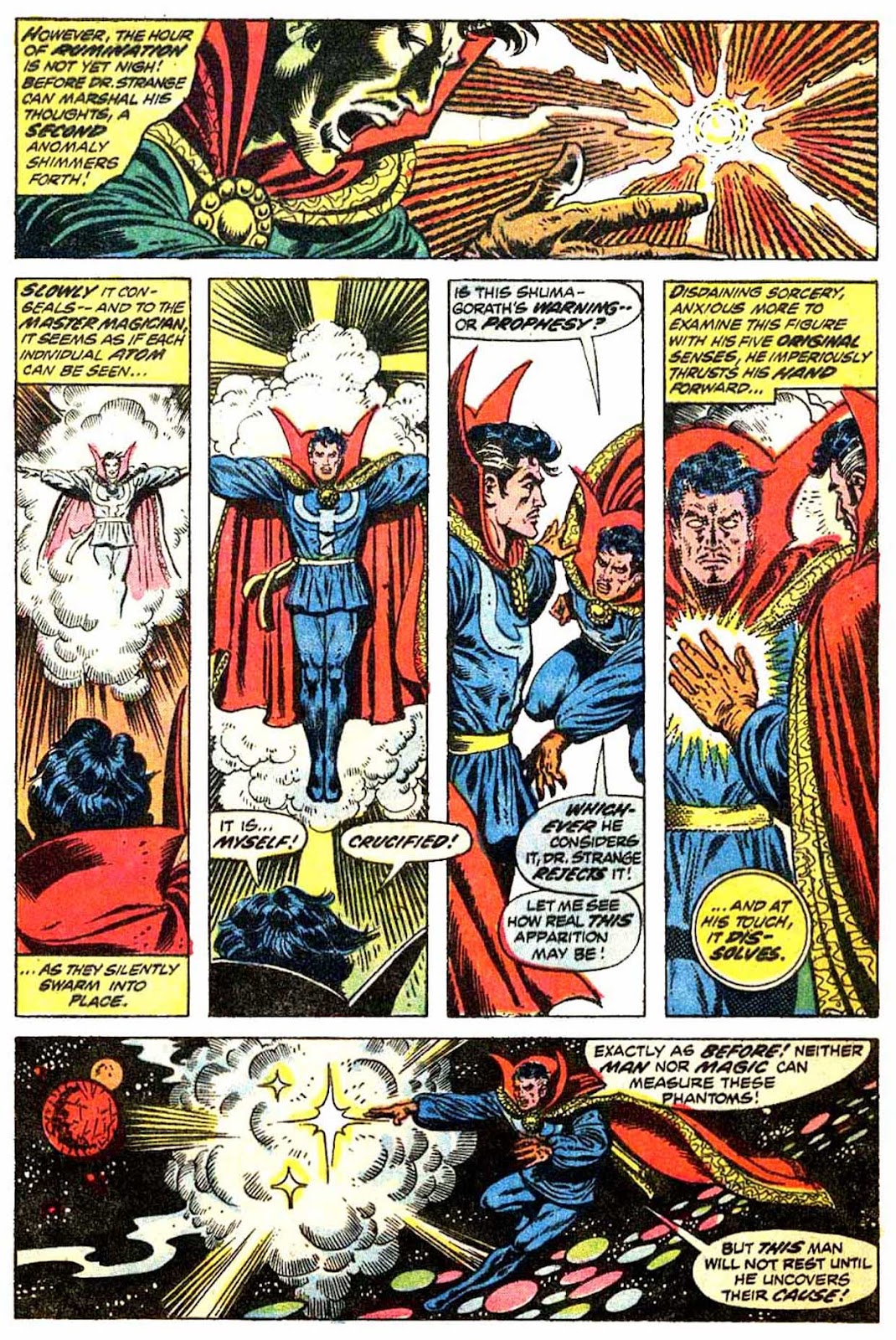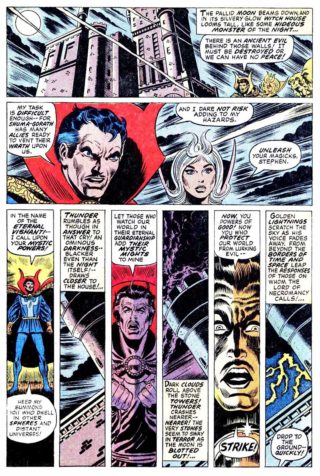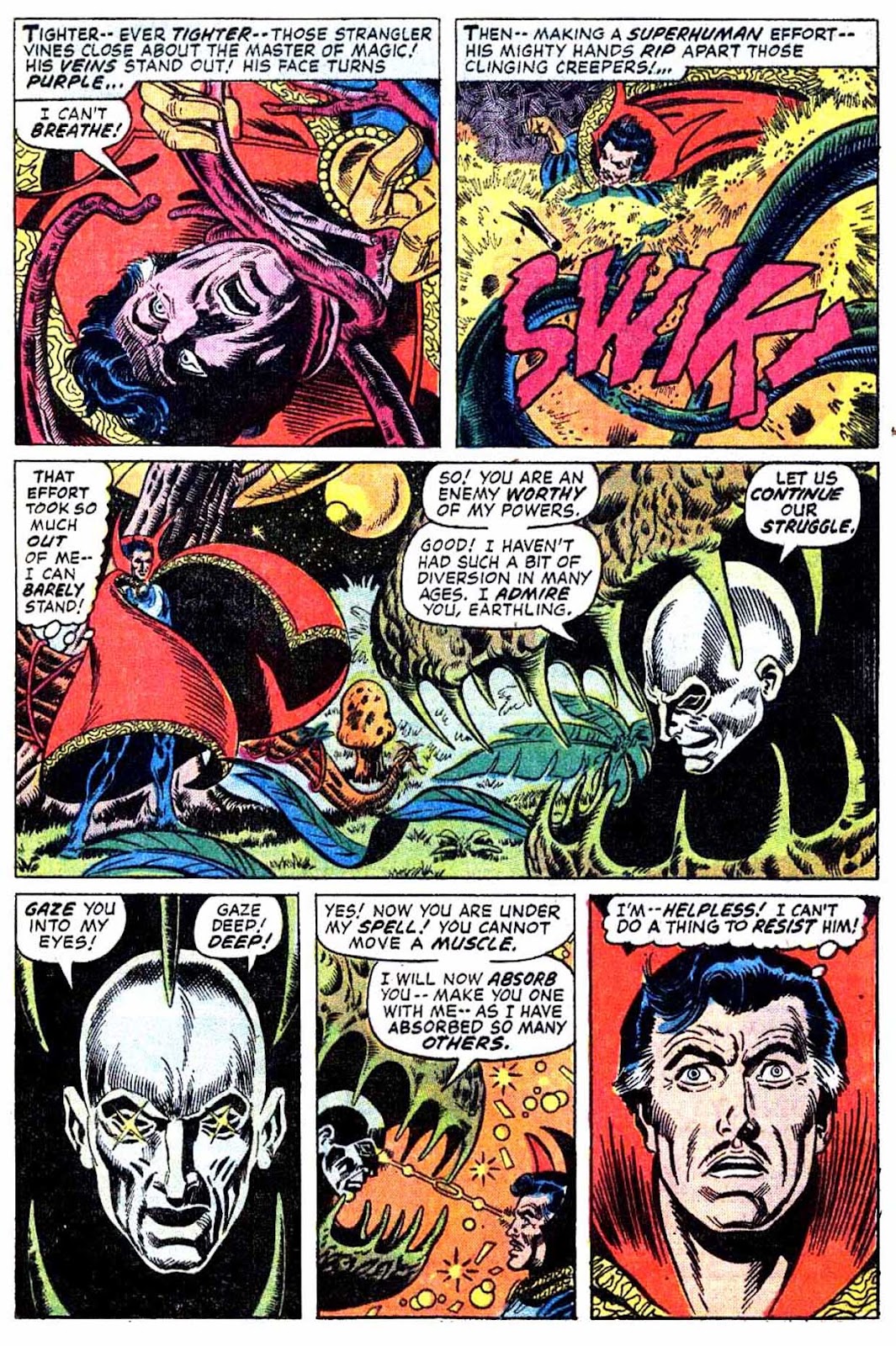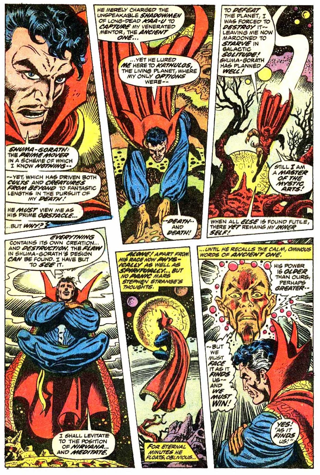 Shuma-Gorath realizes what Strange has done... and even he is intimidated! As he approaches his destination, the master of the mystic arts is wracked with apprehension...