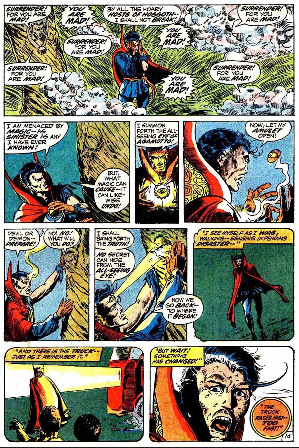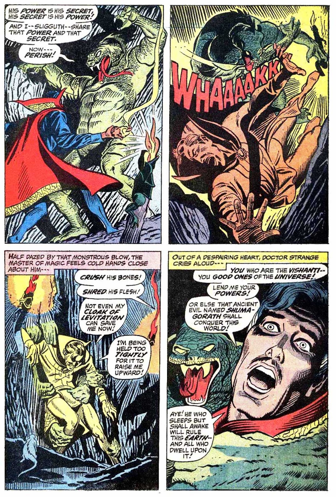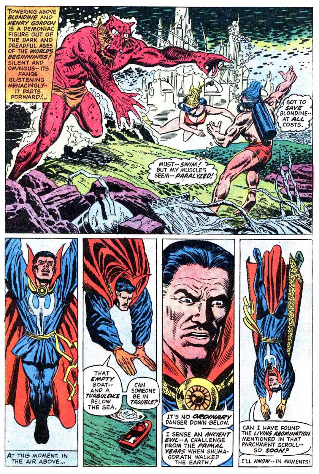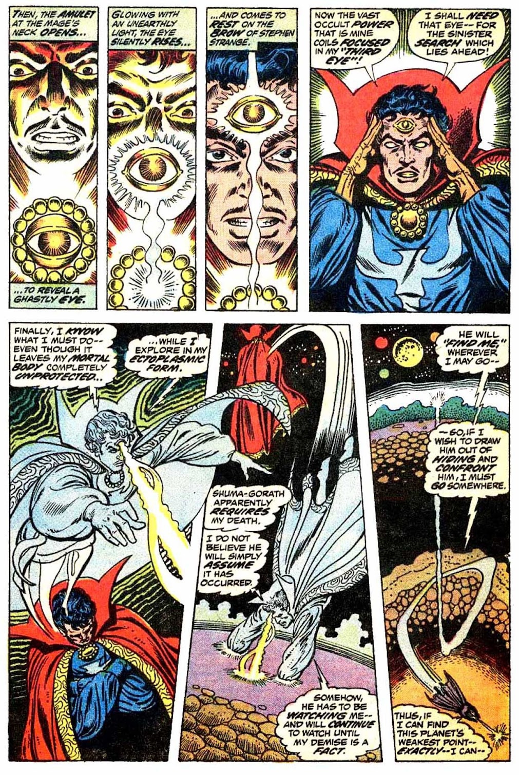 Shuma-Gorath realizes what Strange has done... and even he is intimidated! As he approaches his destination, the master of the mystic arts is wracked with apprehension...