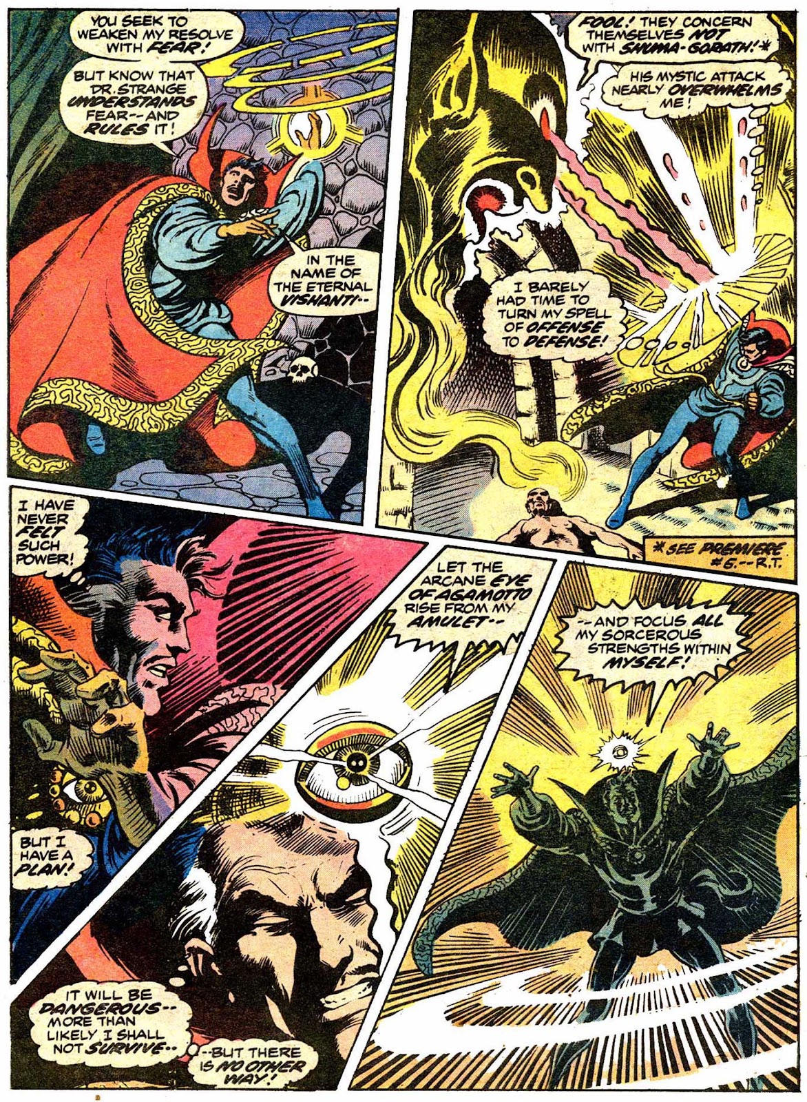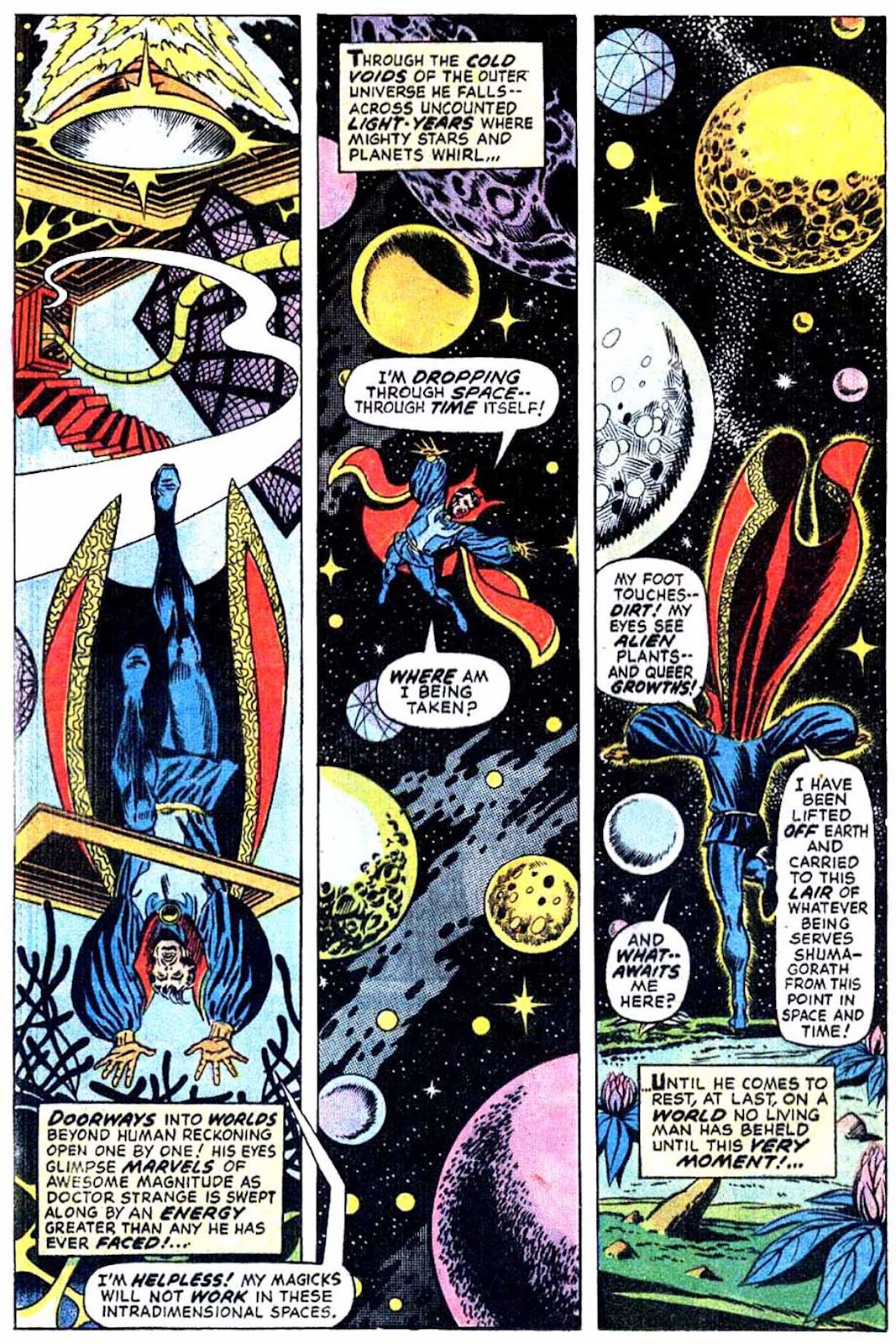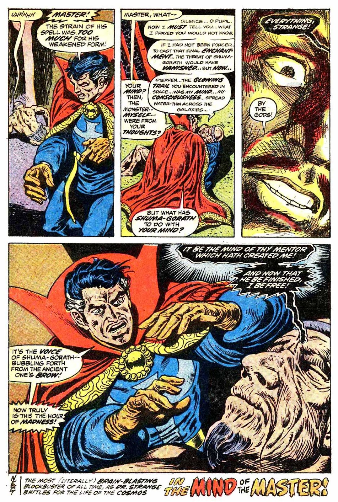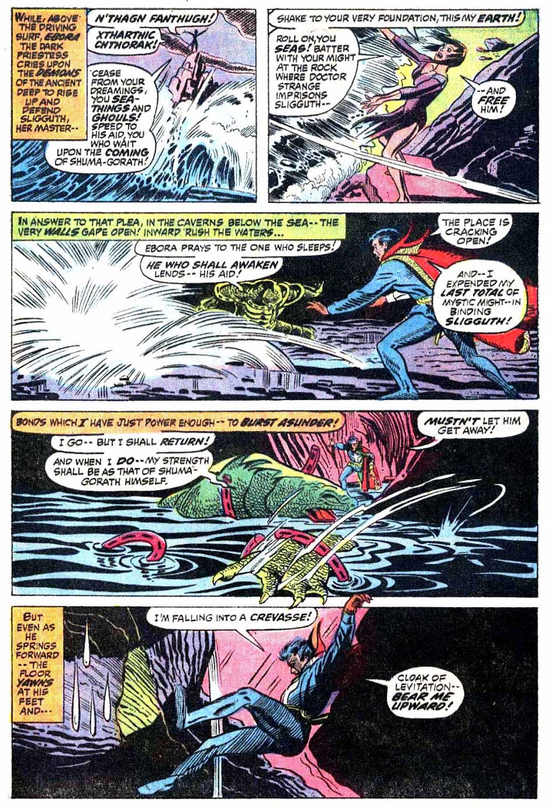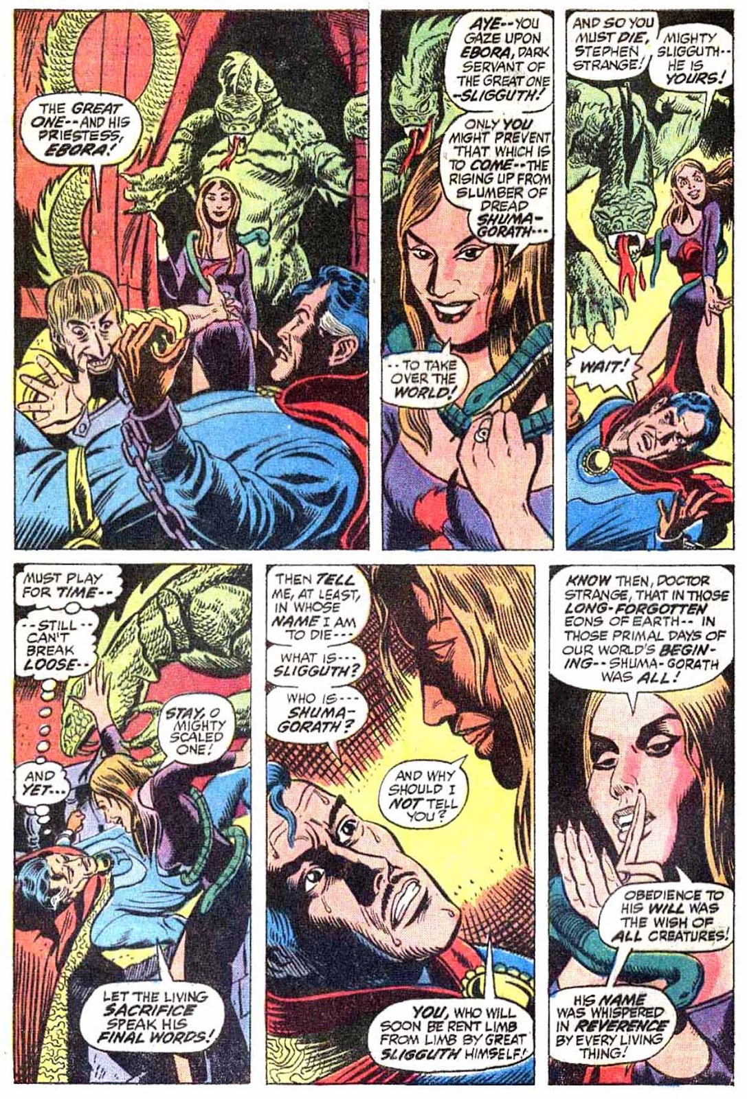 Shuma-Gorath realizes what Strange has done... and even he is intimidated! As he approaches his destination, the master of the mystic arts is wracked with apprehension...