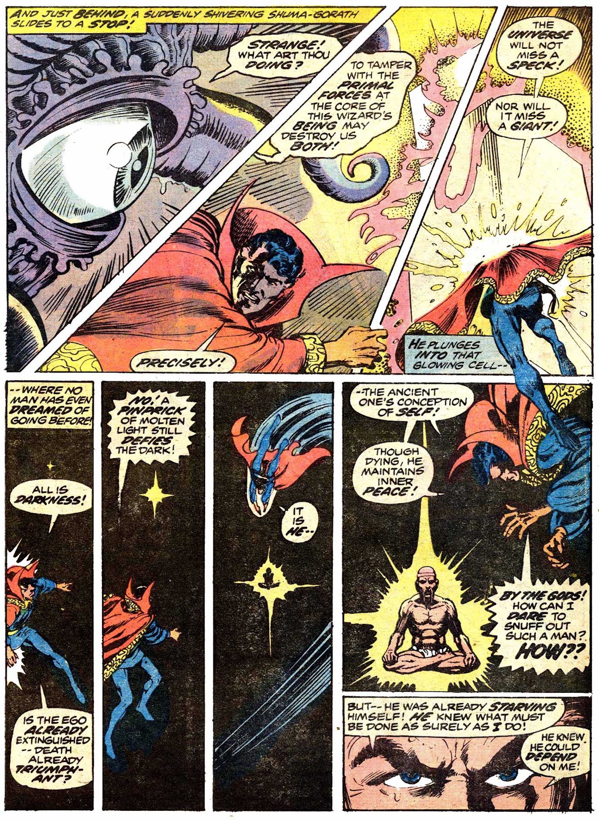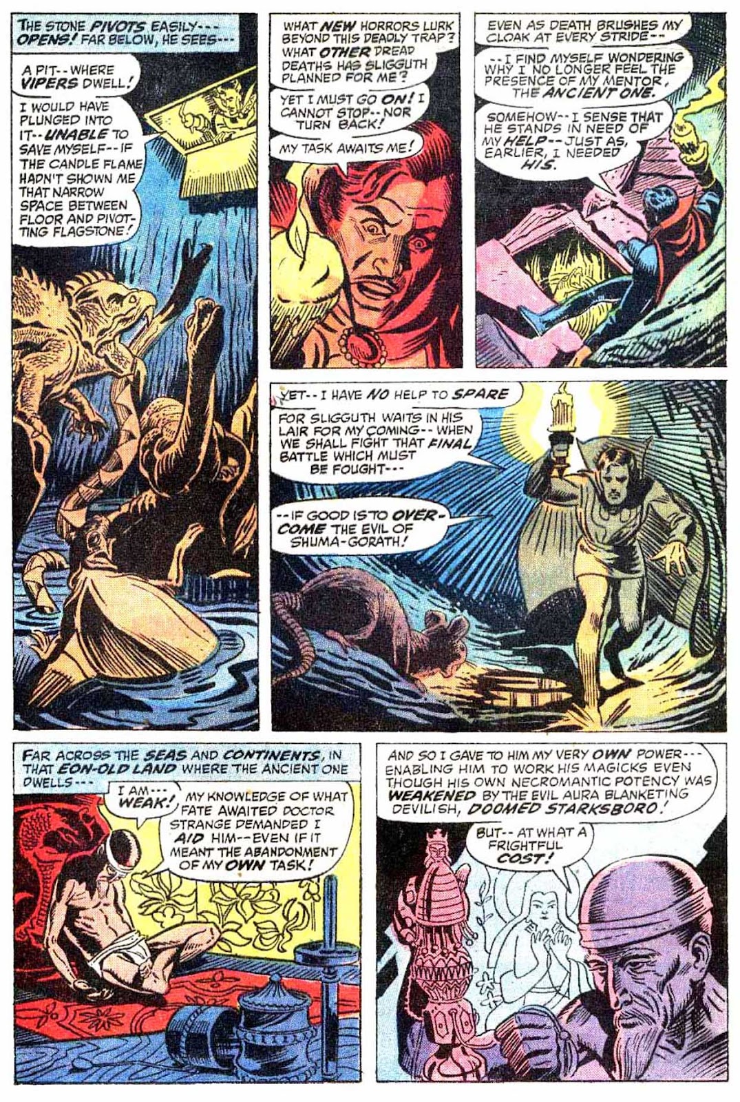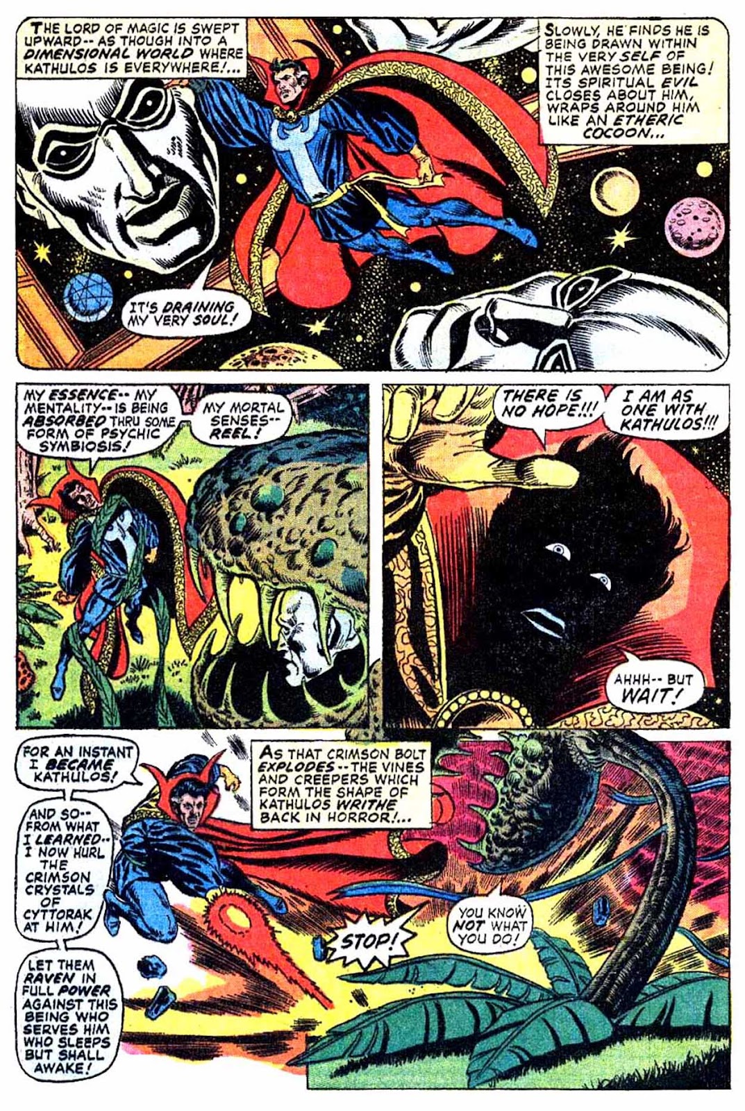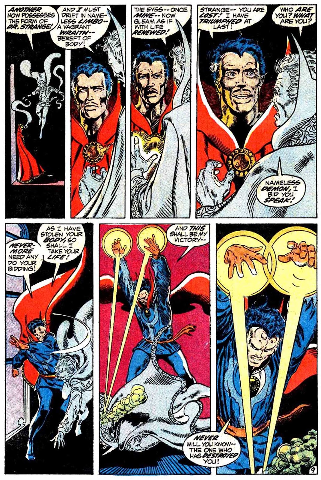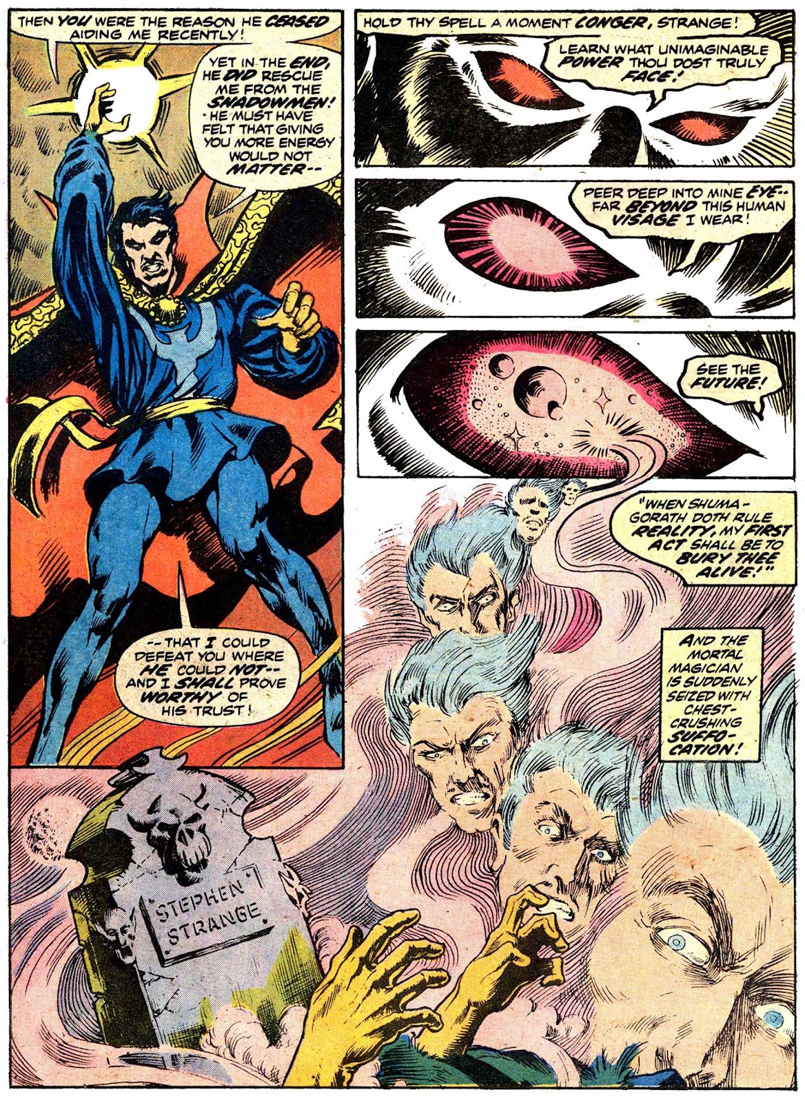 Shuma-Gorath realizes what Strange has done... and even he is intimidated! As he approaches his destination, the master of the mystic arts is wracked with apprehension...