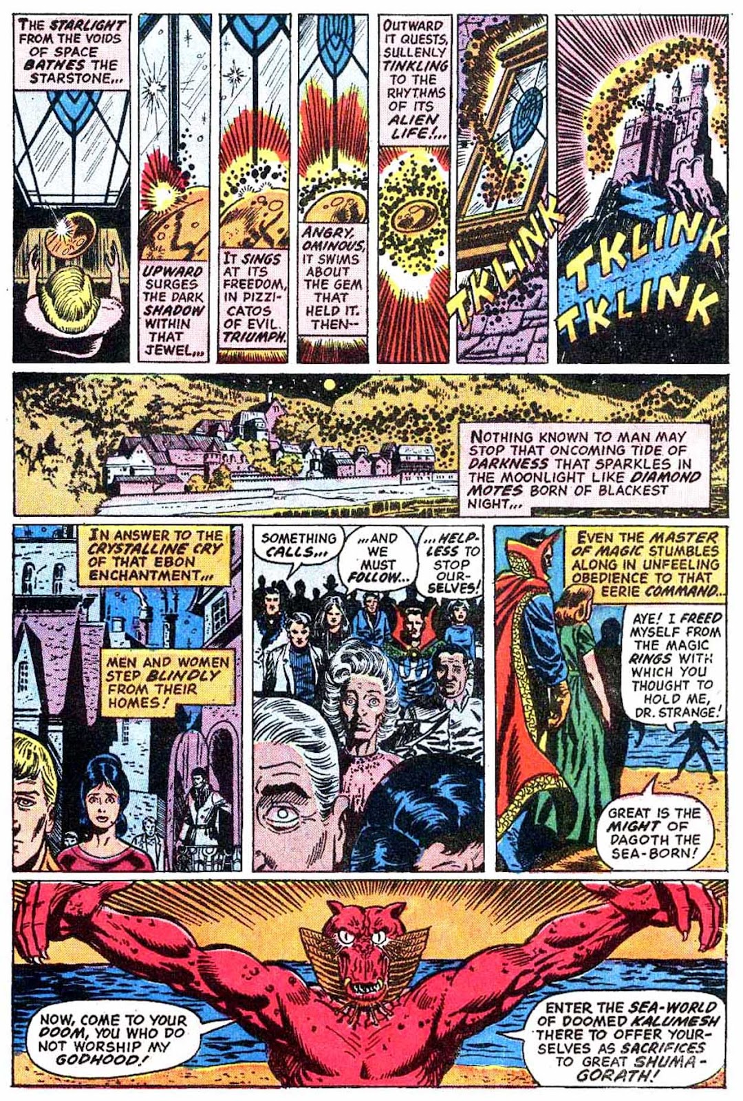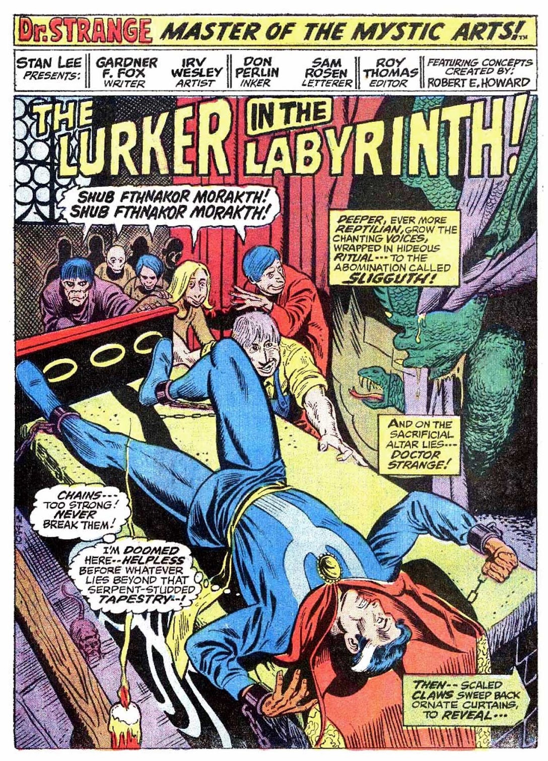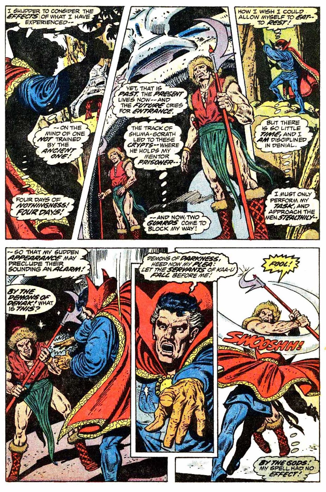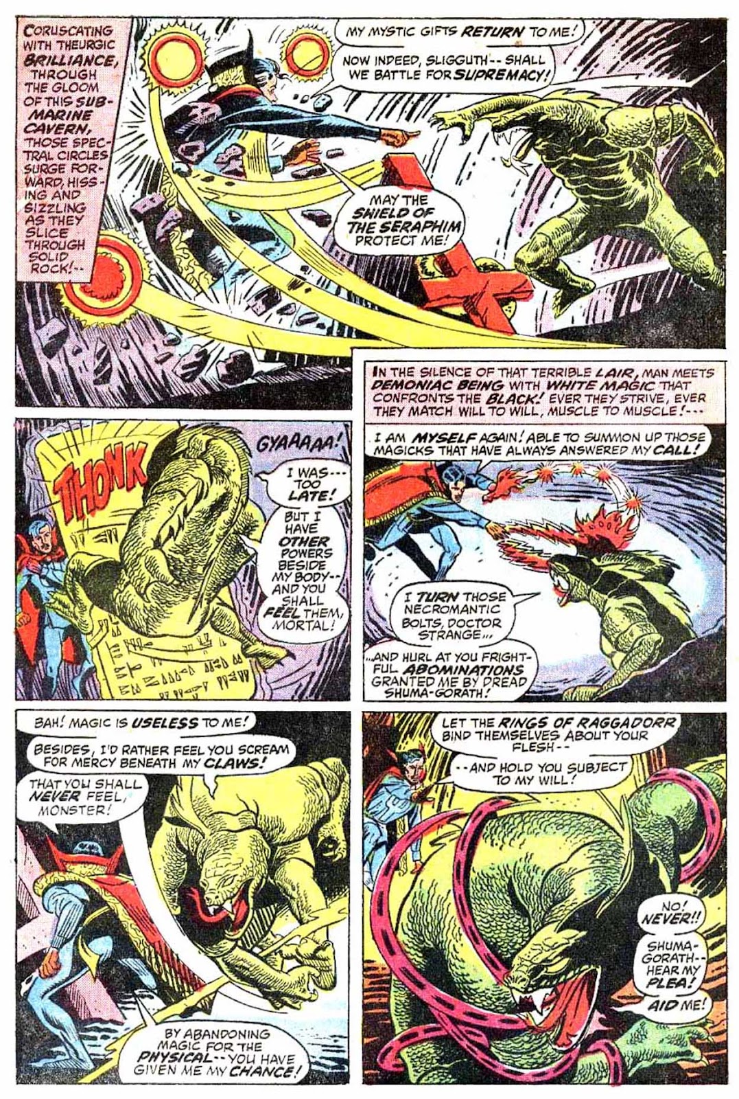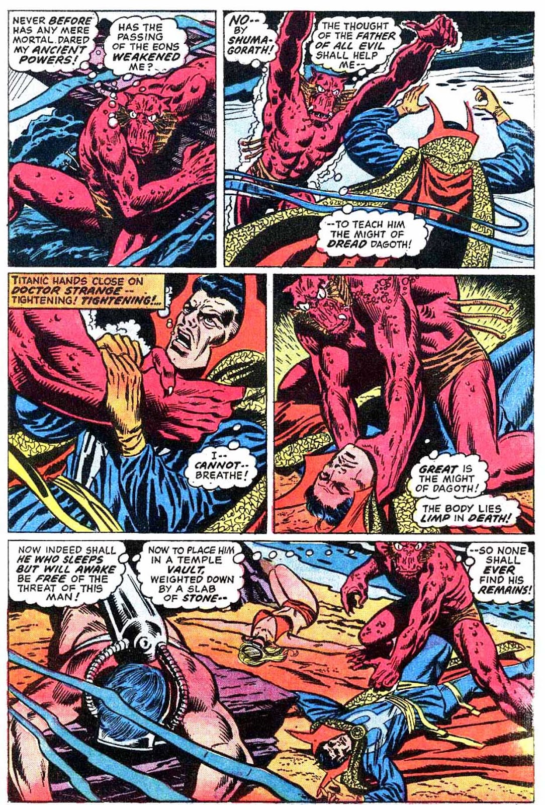 Shuma-Gorath realizes what Strange has done... and even he is intimidated! As he approaches his destination, the master of the mystic arts is wracked with apprehension...
