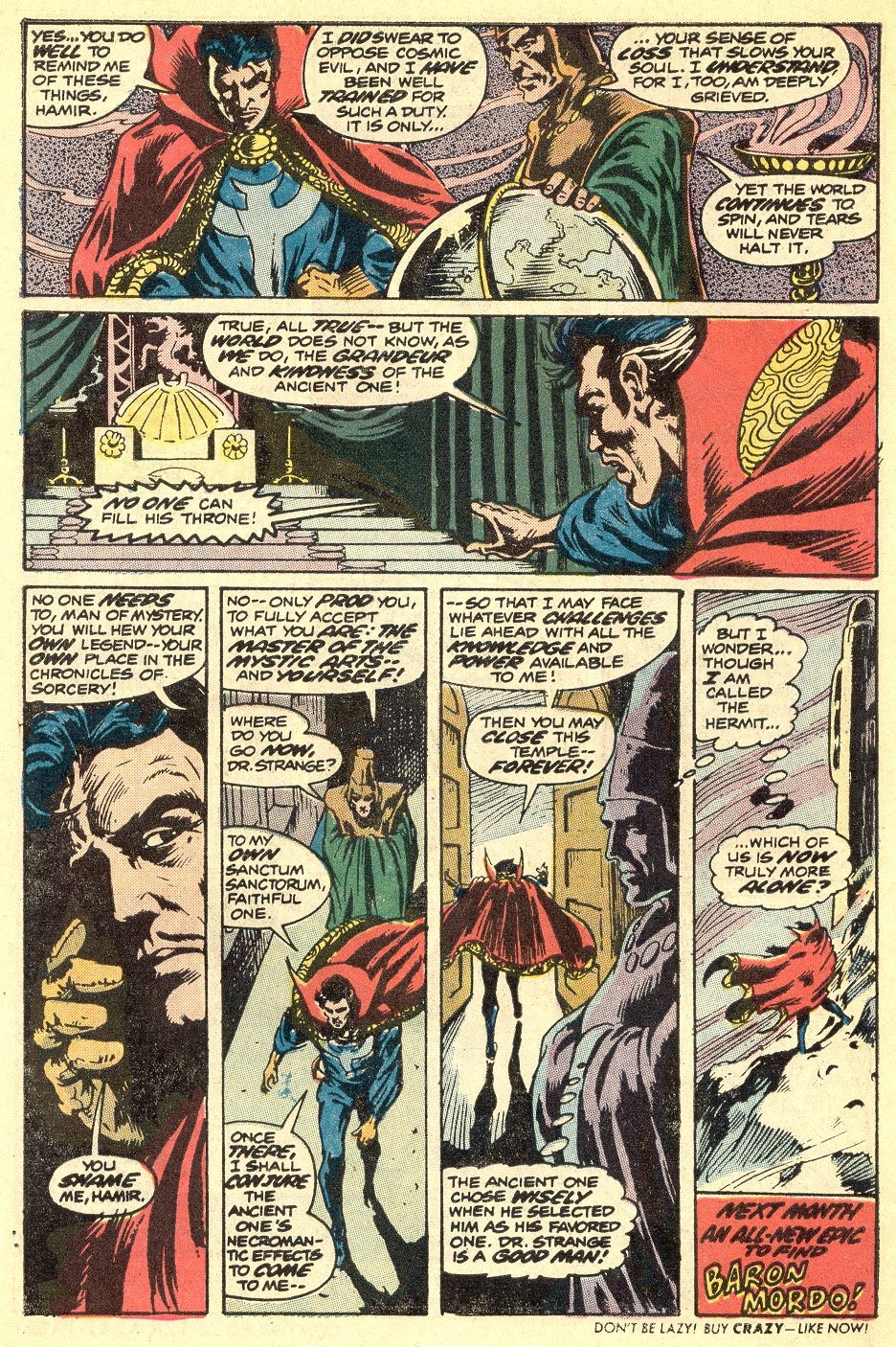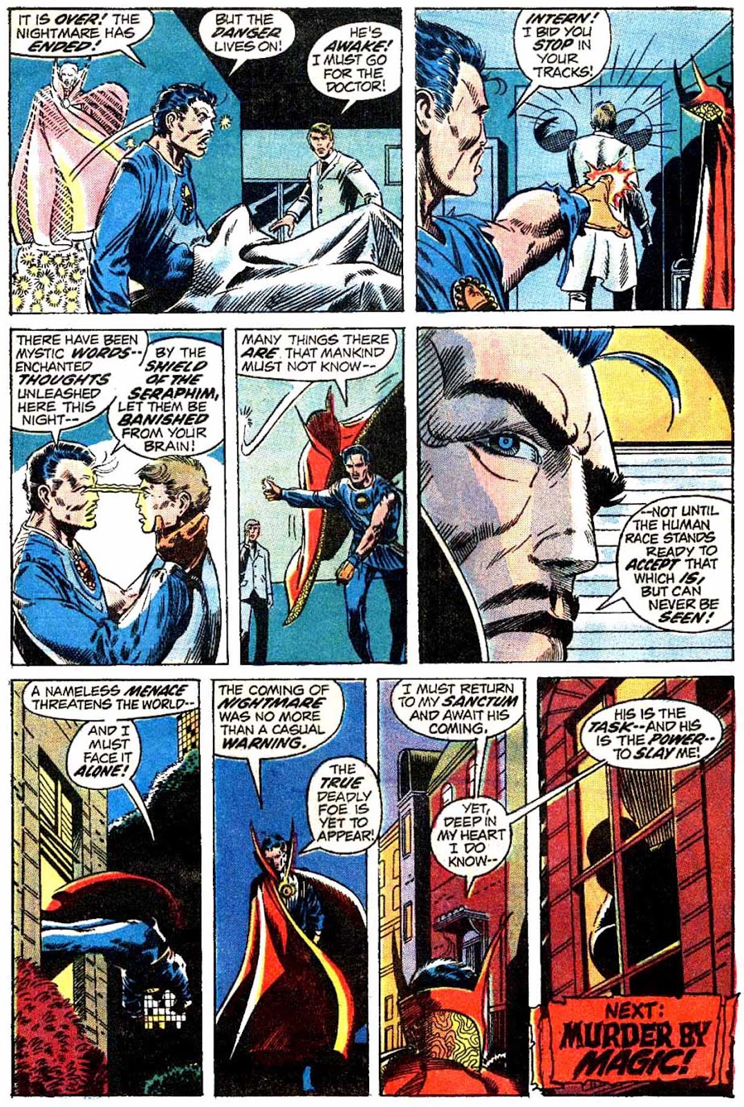 ...HE WHO SLEEPS, AWAKENS!As life slips away from the Ancient One, he reveals the truth to Stephen Strange! So issue 9 ends!