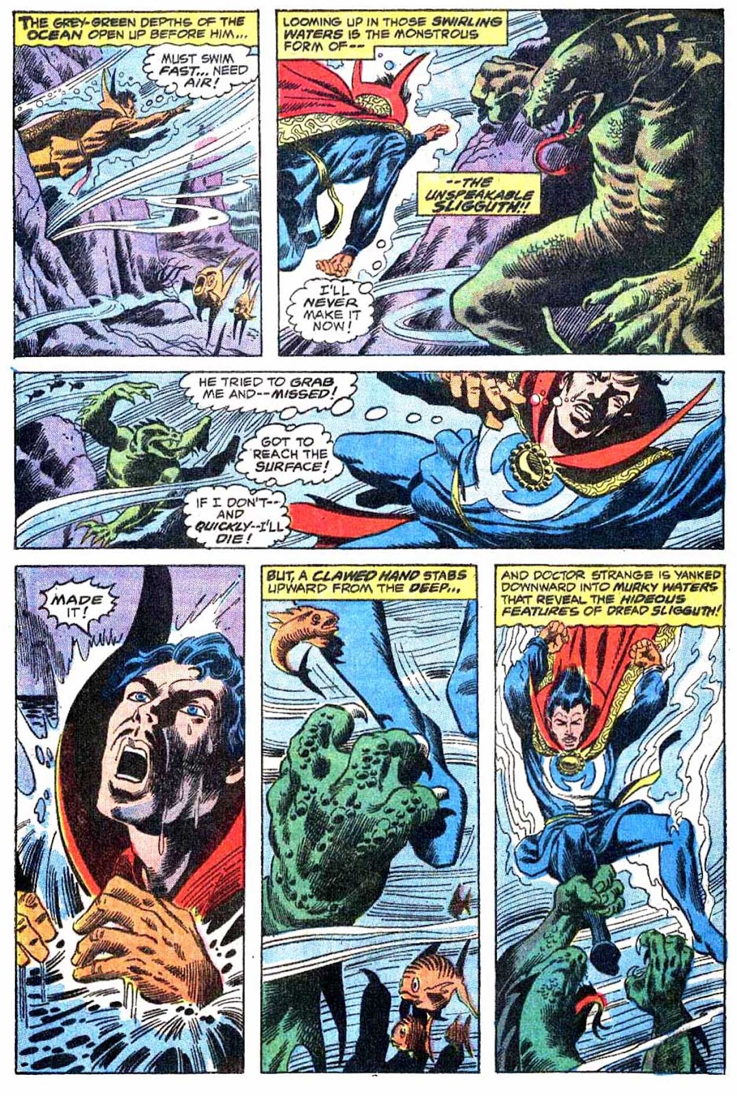 And the civilians are more scared of an angry man in a cape than the giant man-fish monster! Ah, Marvel.