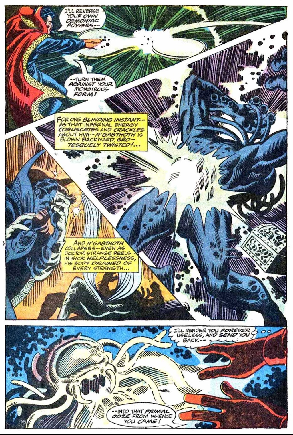 ...but, in the end, he does what he must! Strange puts an end to Shuma-Gorath's presence on Earth-- and the life of his master-- once and for all!