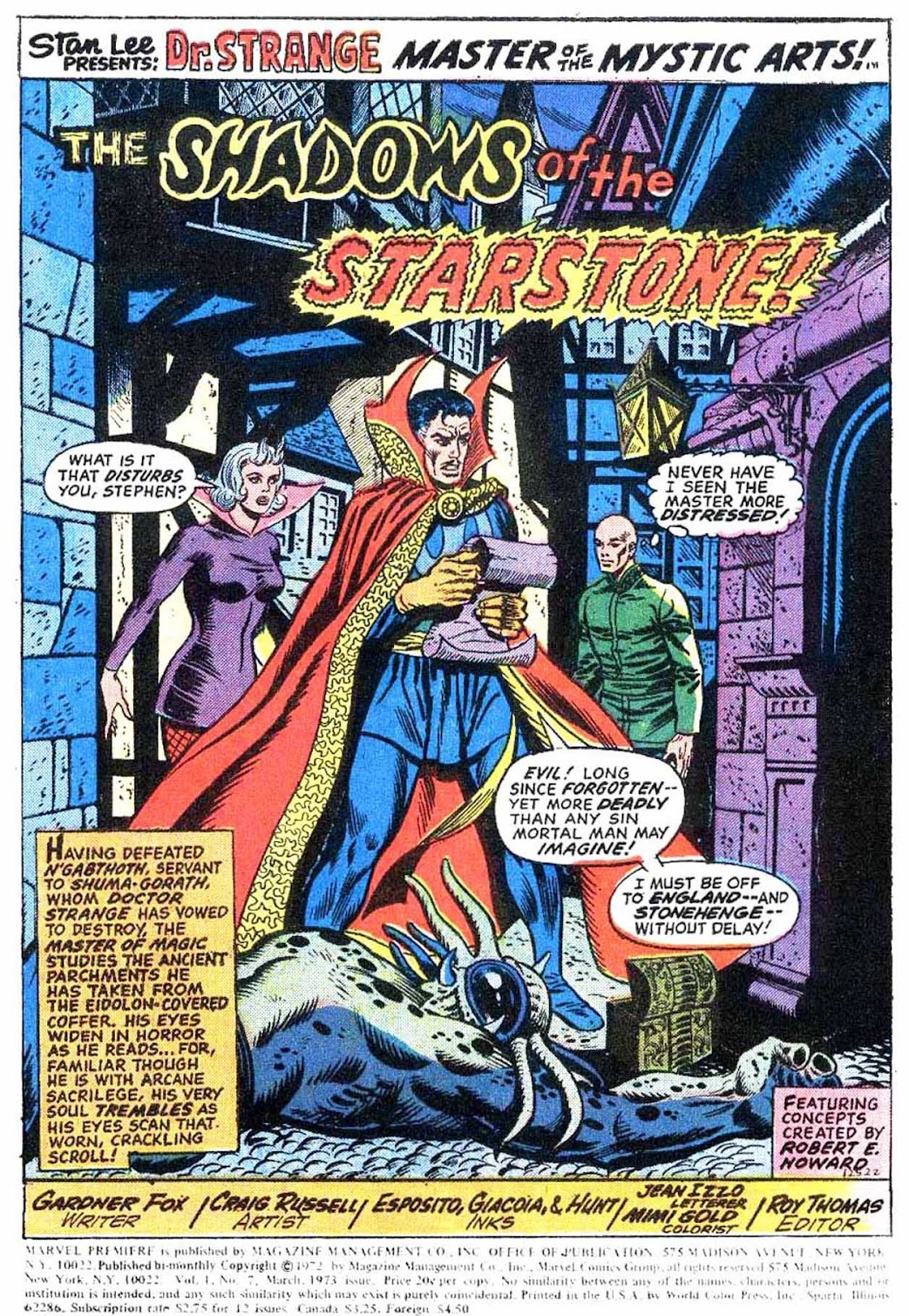 BY THE HOARY HOSTS OF HOGGOTH, LET MAGIC REIGN!54 years ago today, in the long-gone year of 1972, the third issue of Marvel Premiere was published. This issue, starring one Doctor Stephen Strange, kicked off a nine-issue arc that saw the titular magician taking on his now-legendary title and becoming the earthly realm's Sorcerer Supreme. How he got there is quite the tale-- one that I'm very eager to share with others!I'll be storytiming the entirety of that tale in this very thread, collecting issues #3-11 of Marvel Premiere, and I'll cap off the storytime with a convenient way to read more Dr. Strange if this story intrigues you.So, without further ado, let this grand anniversary storytime begin... while the world spins mad!