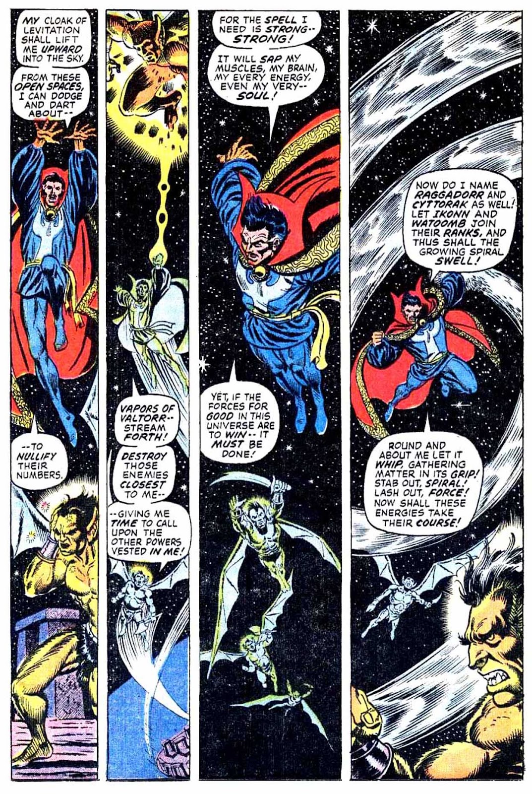 Hell yeah, cape! I don't know why Strange feels the need to incant here, given that the Cloak was already established to be controlled with mental thought alone by this point, but it adds to the scene so it's not irritating so much as it is amusing and confusing.