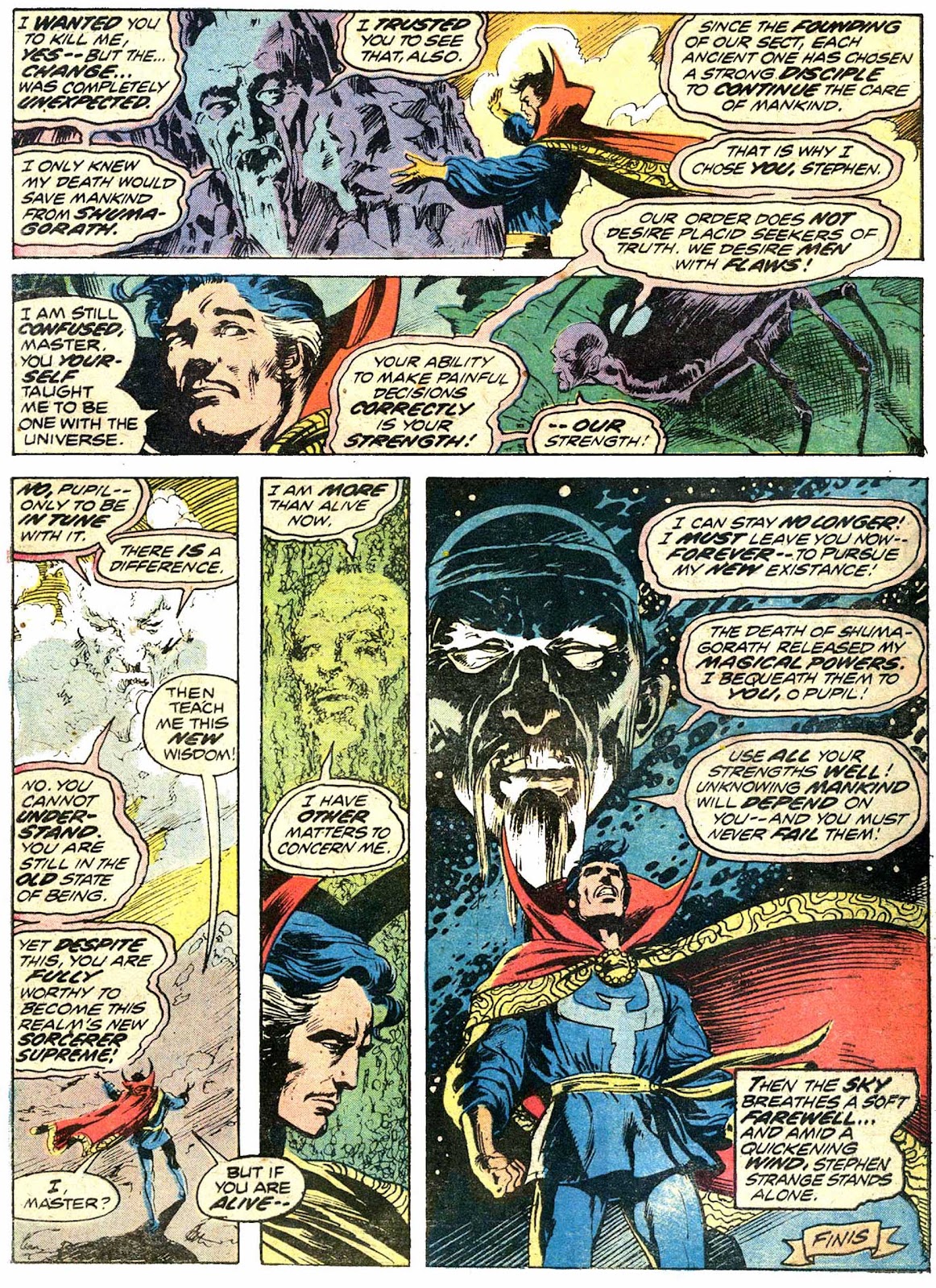 And so, the threat of Shuma-Gorath is kept at bay... by paying the greatest price of all! Stephen Strange stands alone, triumphant... now, Sorcerer Supreme.