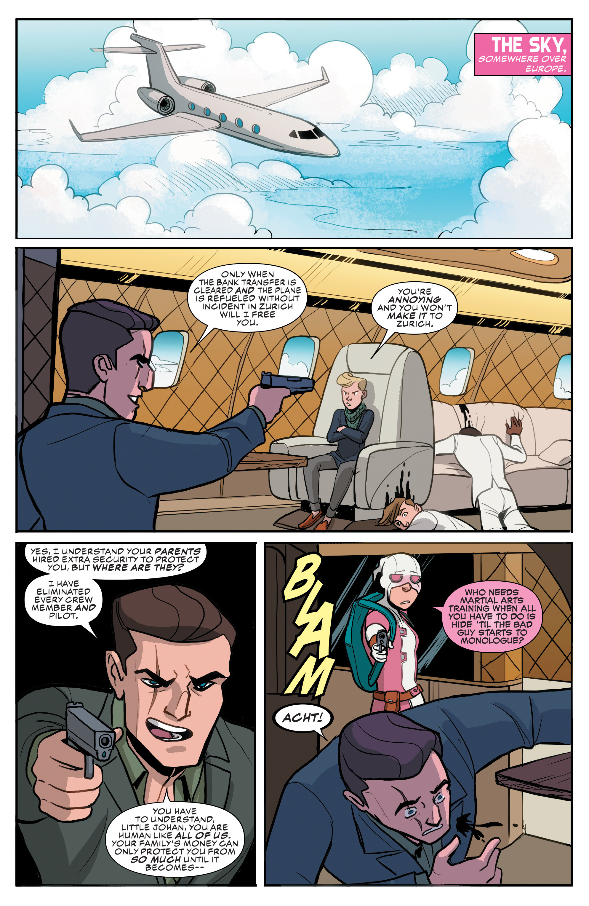 What a twist! An otherwise decent issue tainted by dog shit art and unfortunately this will not be the last time we see Haynes. But next time Gurihiru are back and Gwen LARPs.