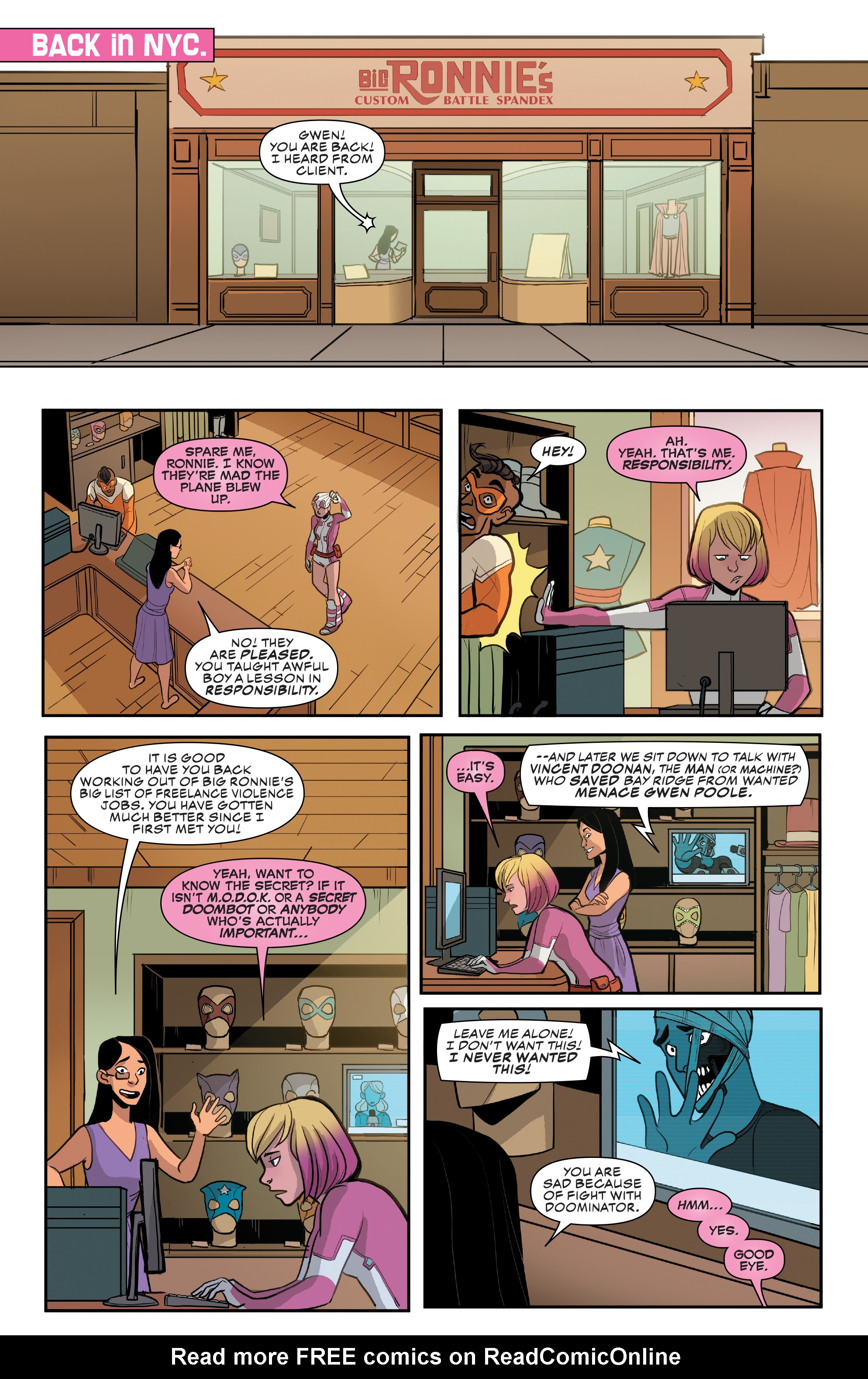 Nice how Ronnie is still trying to bolster Gwen up after MODOK falling apart hit her so hard. Complimenting her on a job well done/doing better, taking notice she's sad and still trying to warn her when she thinks she's over her head. Best work mom.