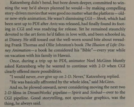 >causes Katzenberg to completely give up on 2D animation