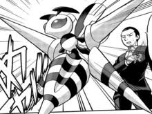 The arena where Machamp fights Shadow Mega Mewtwo, Dark Colosseum, is described, in-game, as "A mysterious subspace rift created by Shadow Mewtwo's power."