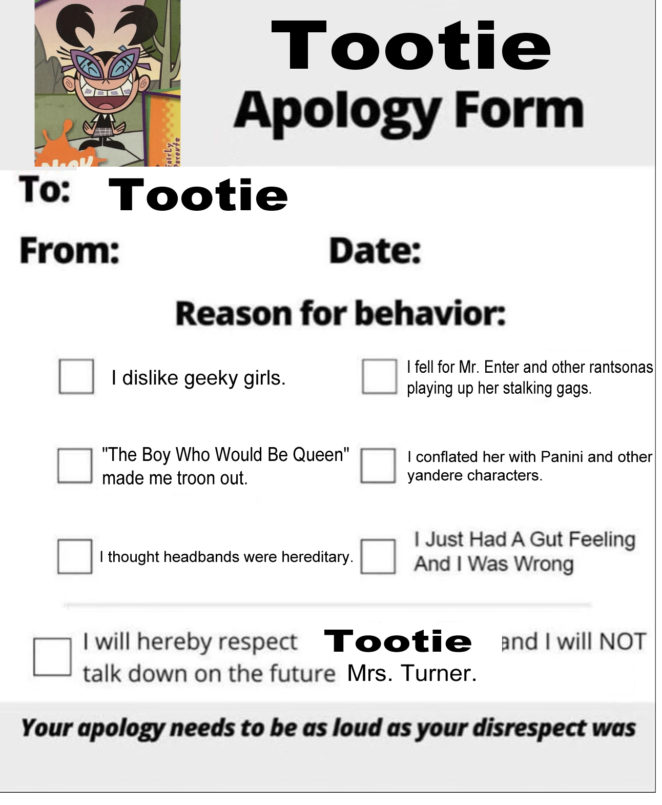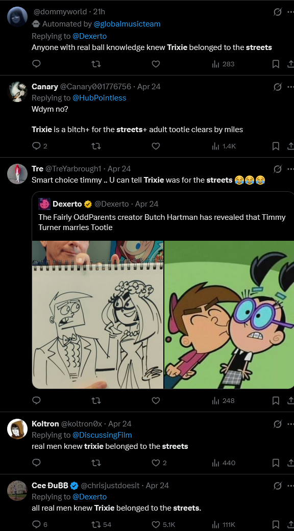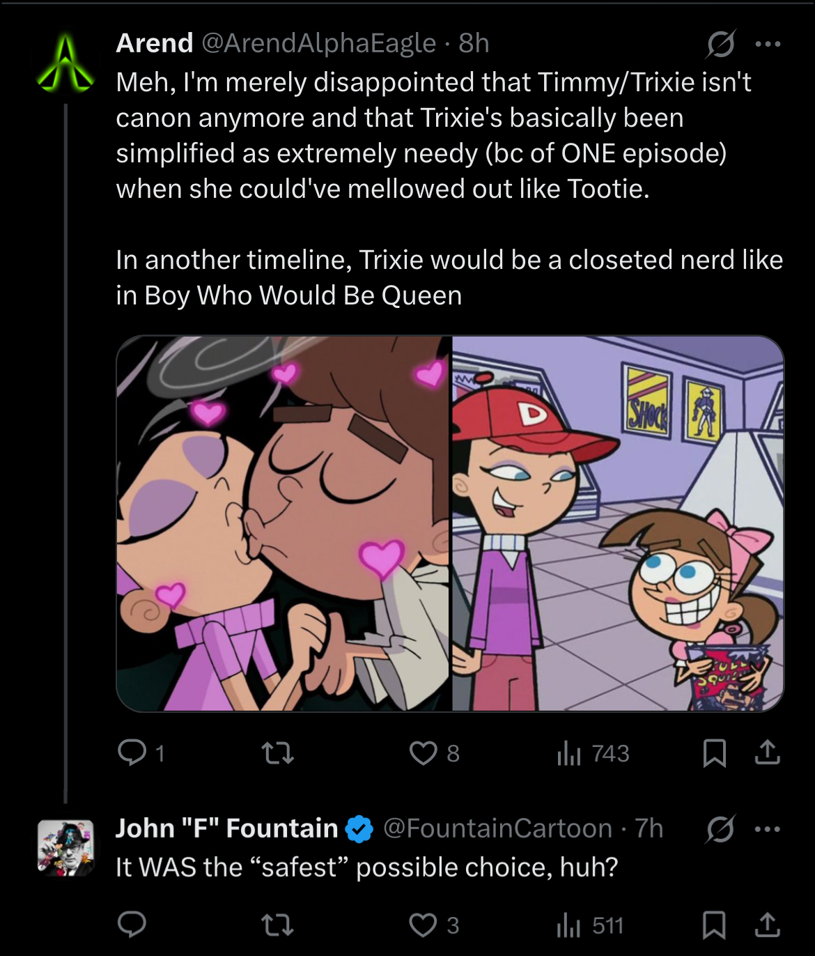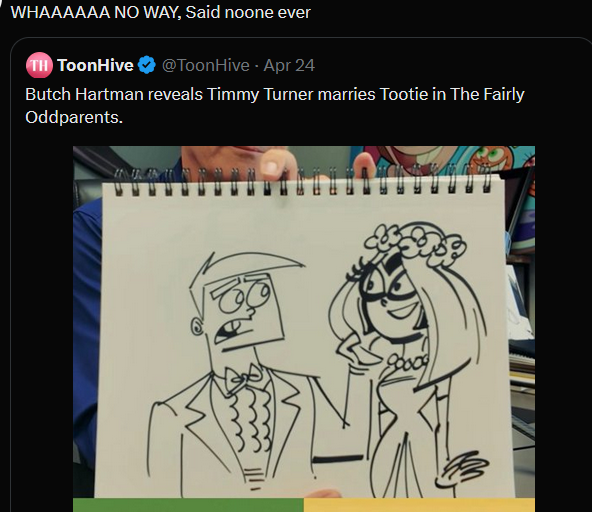 Imagine being this in denial about Tootie being Timmy’s wife. Zutara levels of delusion.