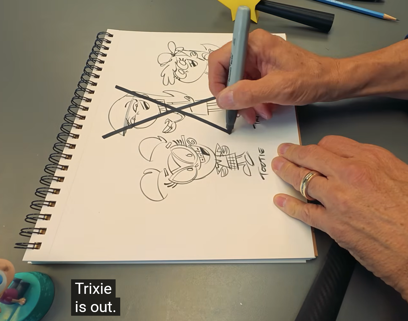his daughter started looking like trixie, so he made sure to write trixie out of the script. he's an unreliable author, same as (arguably) Rowling was when she decided that everyone was black and gay.